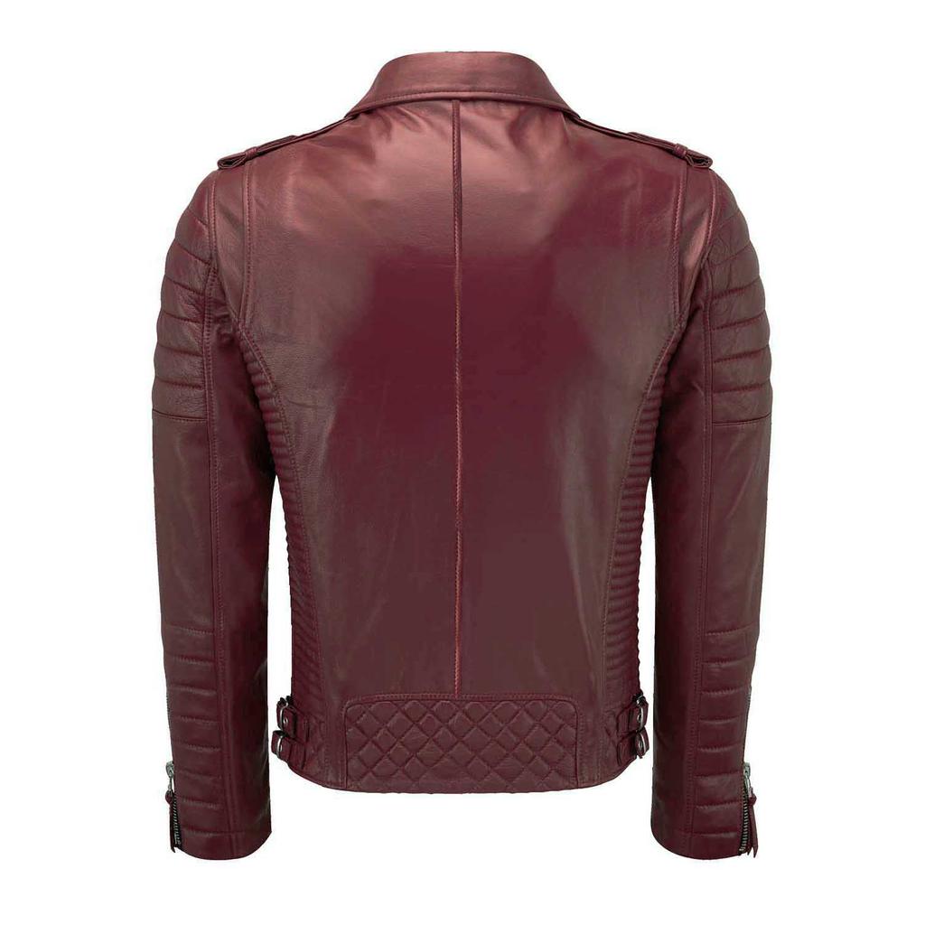 SKINOUTFIT Men's Motorcycle Leather Jacket Genuine Dark Red Lambskin Café Racer Biker Outerwear