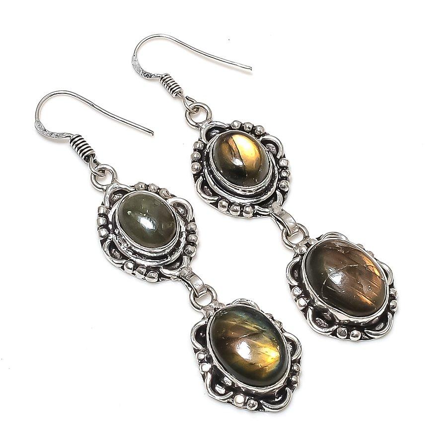 Серьги из серебра 925 пробы с натуральным лабрадоритом ручной работы 2,48 дюйма r6J63