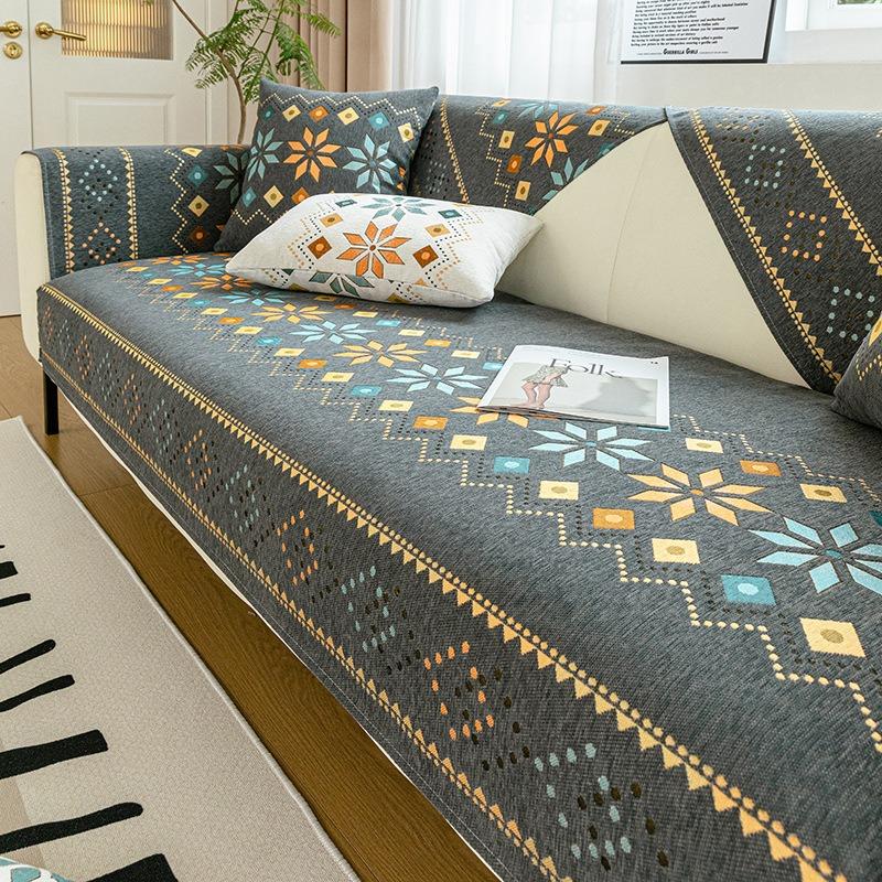 Мягкий, гладкий, утолщенный шенилл, стеганый диванный полотенце с вышивкой, противоскользящий чехол для дивана, защитный чехол для мебели, коврик для эркера