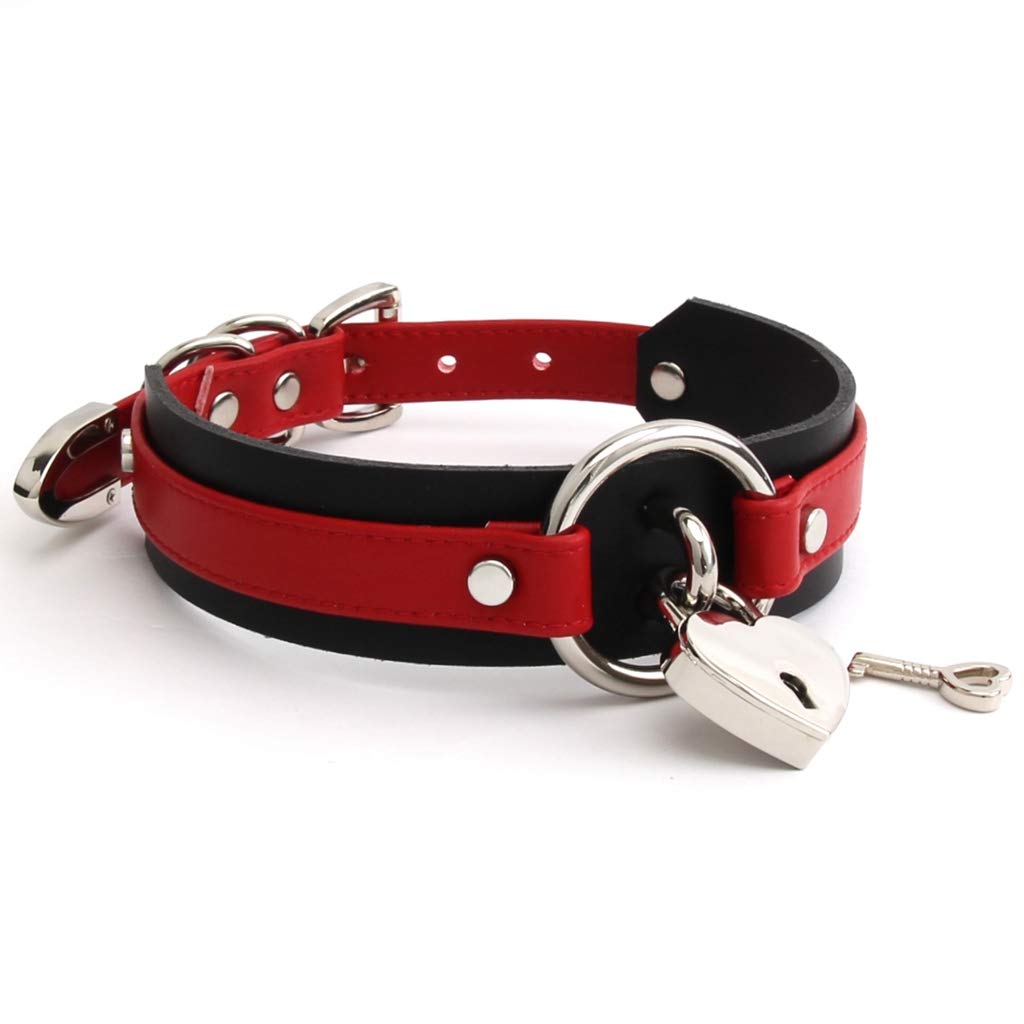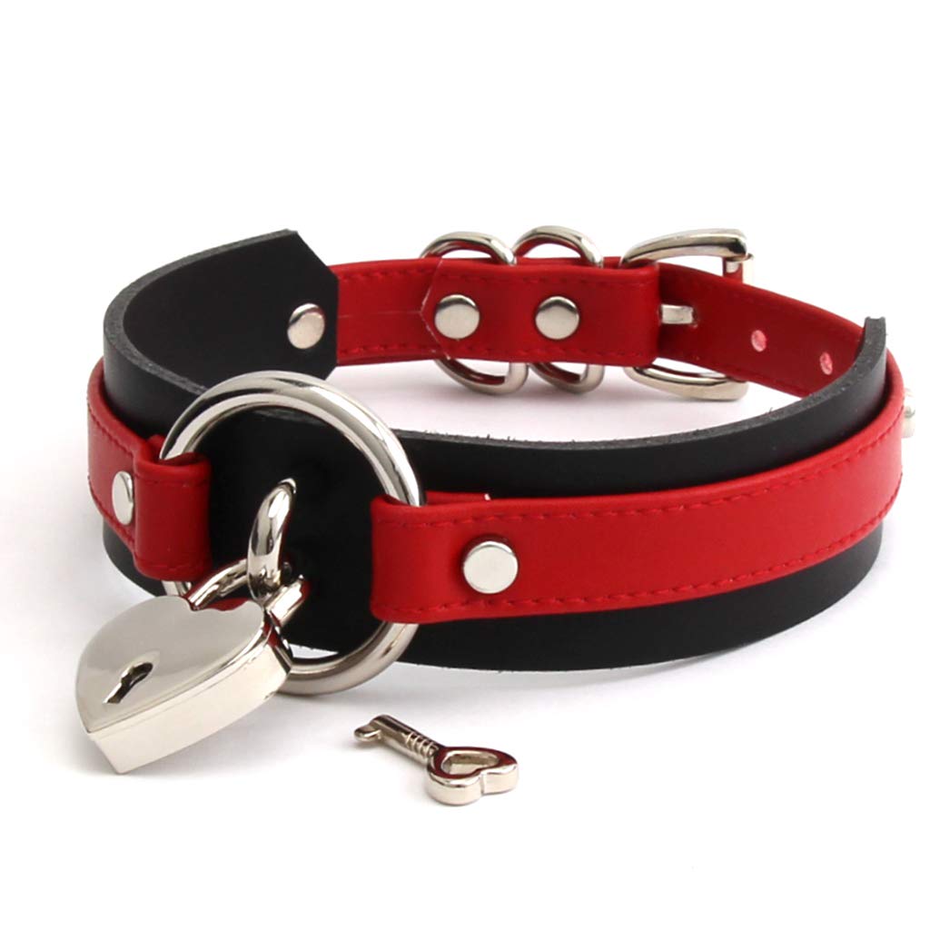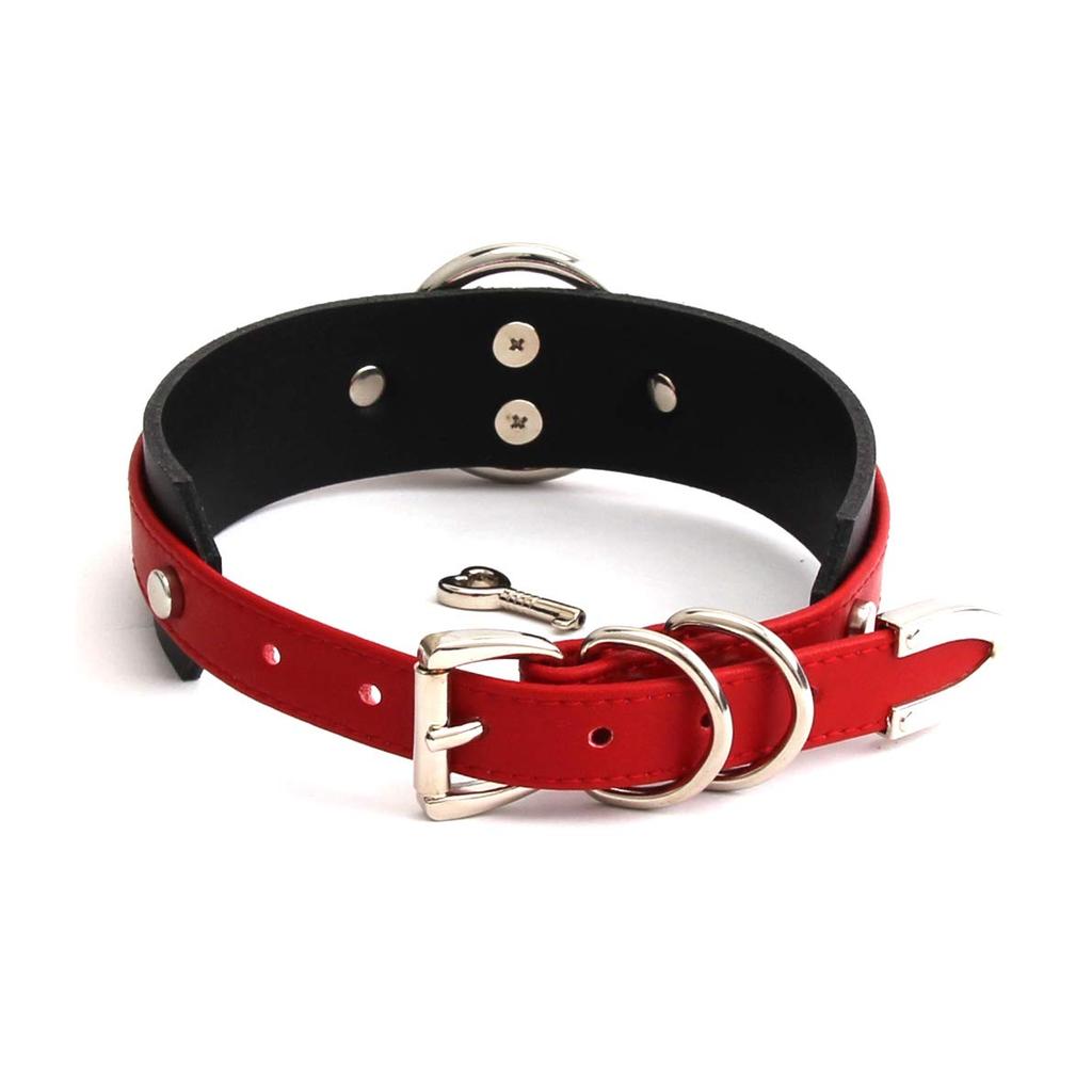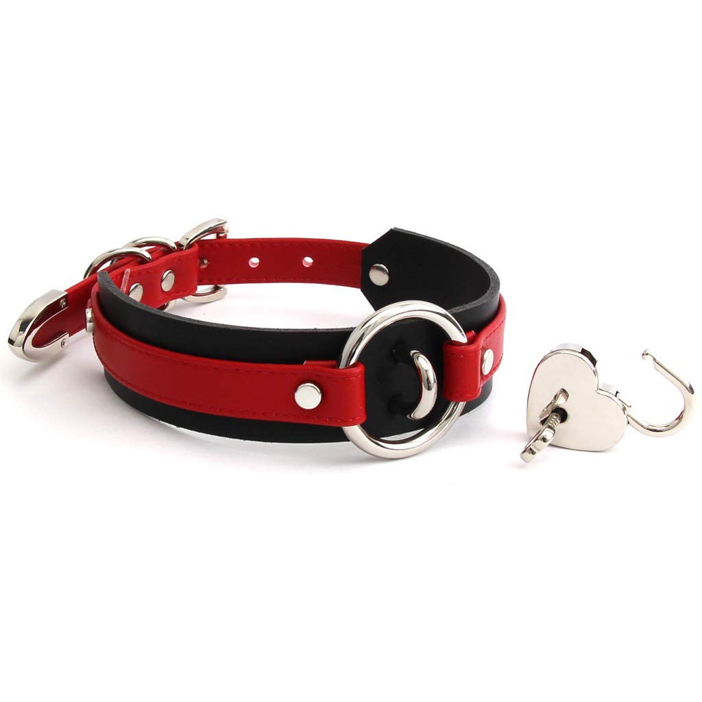 Кольцо-чокер с замком в форме сердца из искусственной кожи черного цвета (Красный и серебристый)