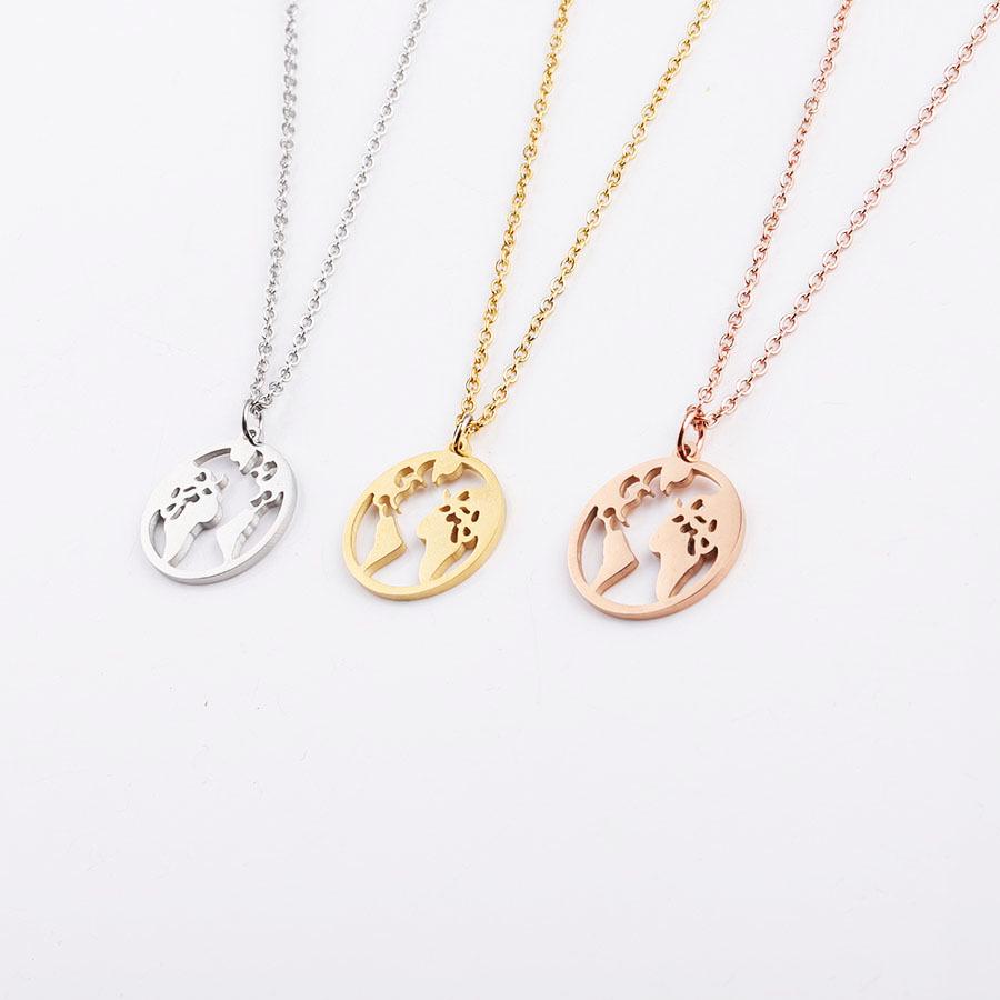 Геометрическое полое ожерелье из нержавеющей стали с картой мира — купить товар онлайн с бесплатной доставкой по всему миру!