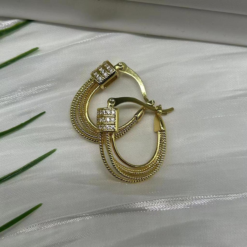 Модные U-образные французские золотые серьги 2024 года с инкрустацией из циркония для женщин — ретро, стильный и преувеличенный дизайн
