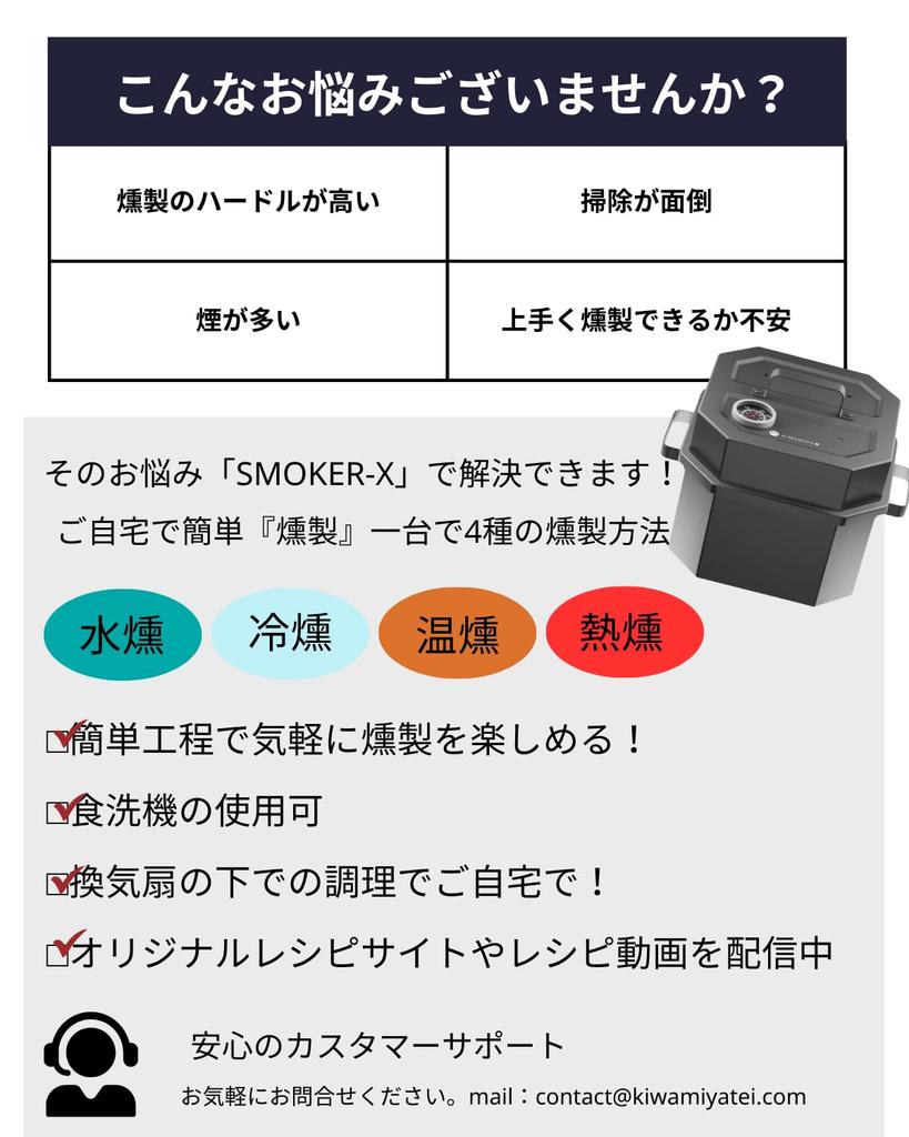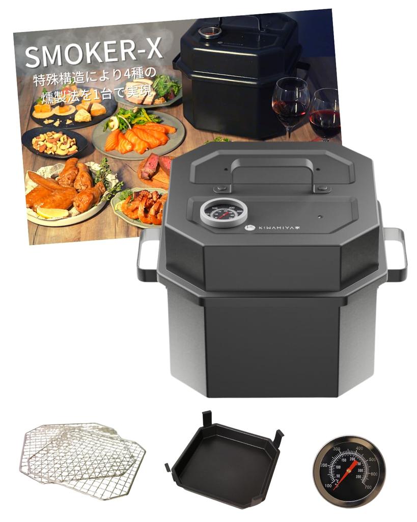 [Разработано для раскрытия восхитительного вкуса ингредиентов, которые не хотят коптиться] Конструкция позволяет дыму распространяться, подавляя неравномерность копчения, и использует метод копчения, который мягко обволакивает ингредиенты. Таким образом, мы стремимся создать копченые продукты, которые раскрывают восхитительный вкус, а не просто копченые продукты с дымком.