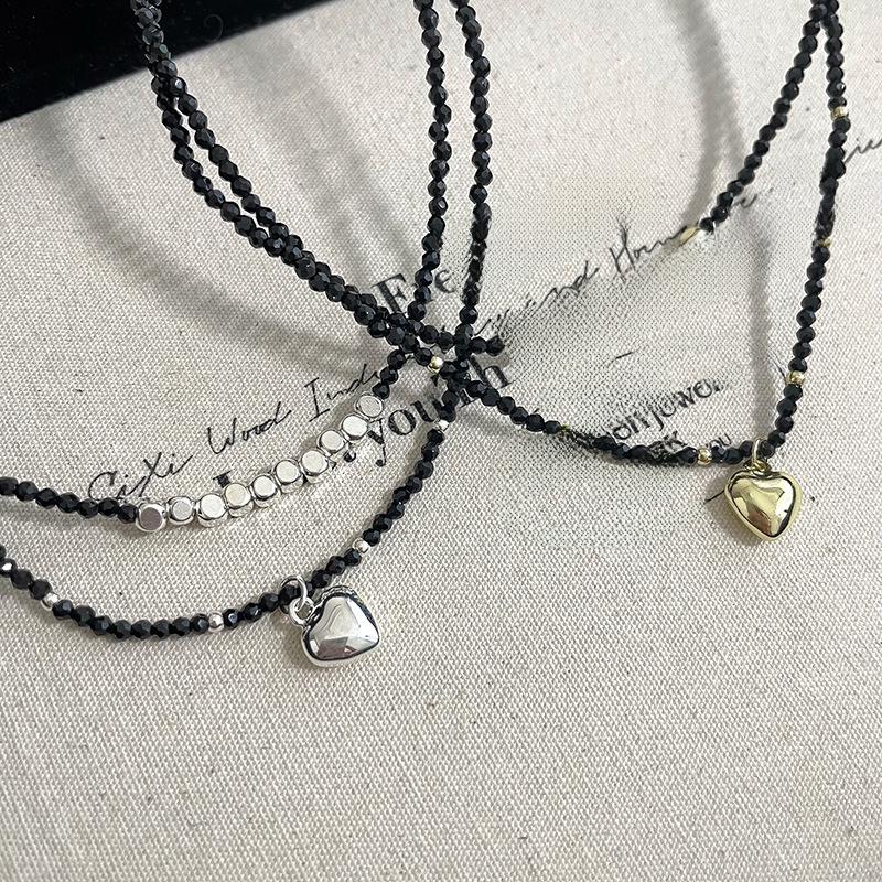 Ожерелье из металла в стиле ретро с черным кристаллом в форме сердца — универсальный, простой и стильный дизайн для женщин