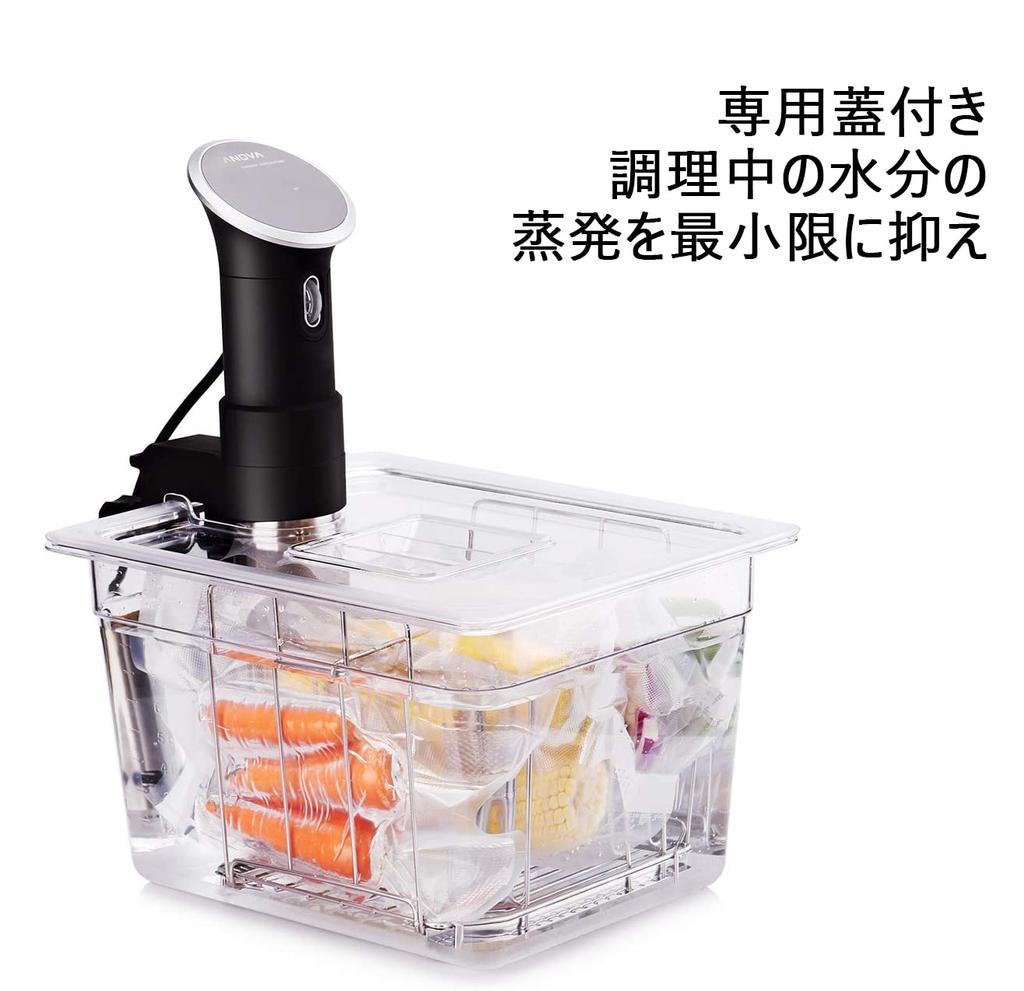 ``Большая емкость 11 л, рекомендуется для семей с большими семьями'' Этот низкотемпературный контейнер имеет большую емкость 11 л, что позволяет готовить около 10 кусков куриной грудки одновременно.. Вы можете легко изготовить домашние реторт-пакеты, которые будут питательными и полезными для вашего организма, не беспокоясь о вместимости, а также вы можете сделать их заранее.. Размер тела: 32*26*20см