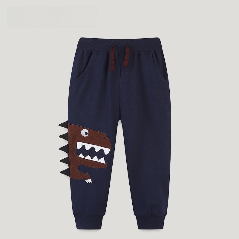 Хлопковые спортивные штаны для мальчиков с вышитым осенним динозавром — европейский и американский стиль