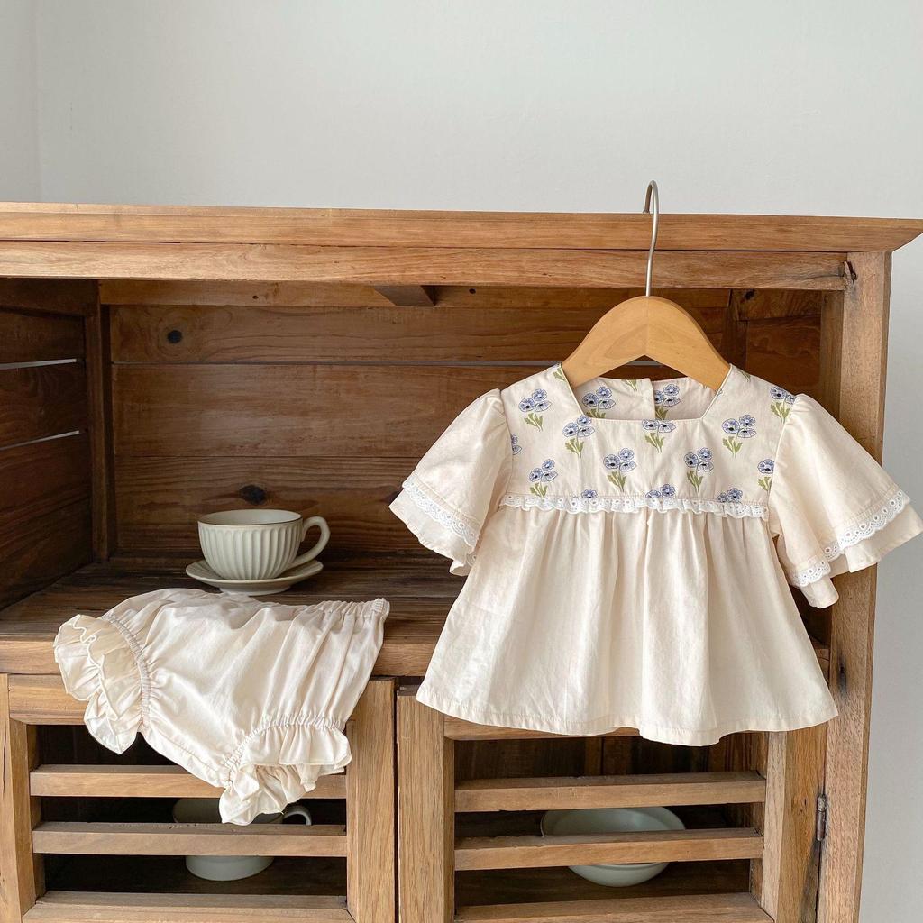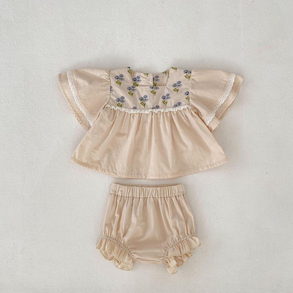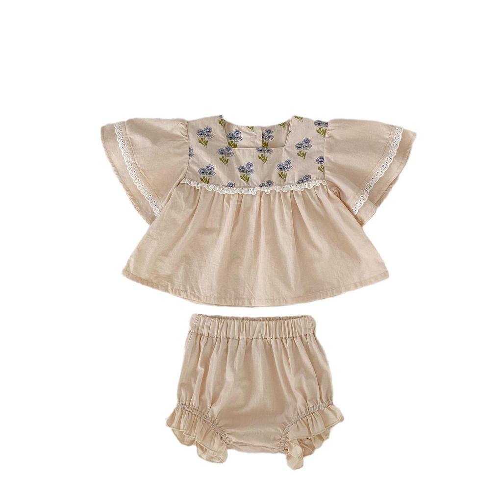 Летний комплект 2024 года для малышей и малышей: топ с рукавами-трубами и штаны с оборками