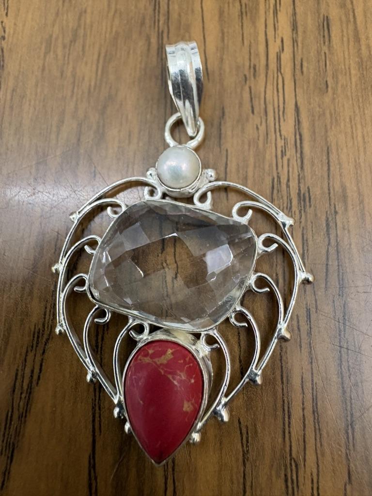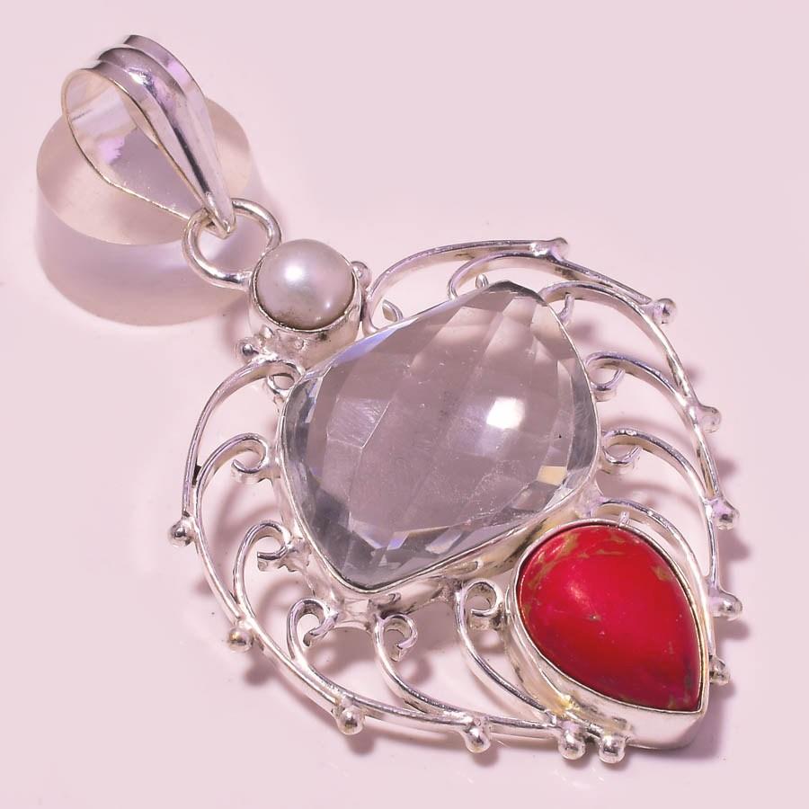 Кулон с жемчугом белого топаза и бирюзой, ювелирное изделие ручной работы 2,3 дюйма N1q27