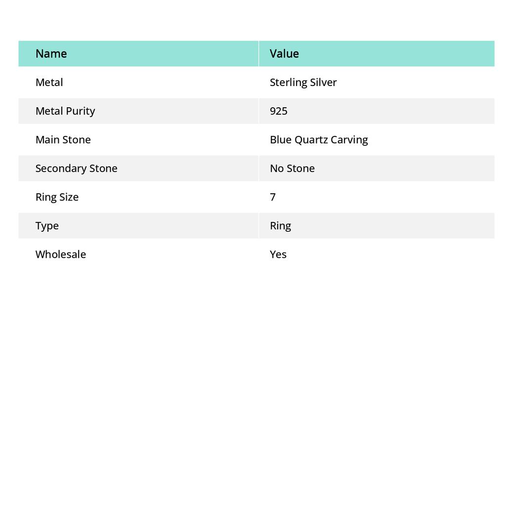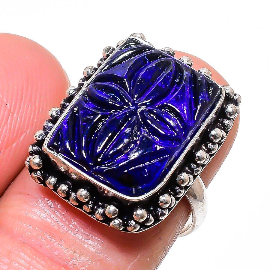 Кольцо из натурального синего кварца с резьбой по камню из стерлингового серебра 925 пробы, размер 7 V5v36
