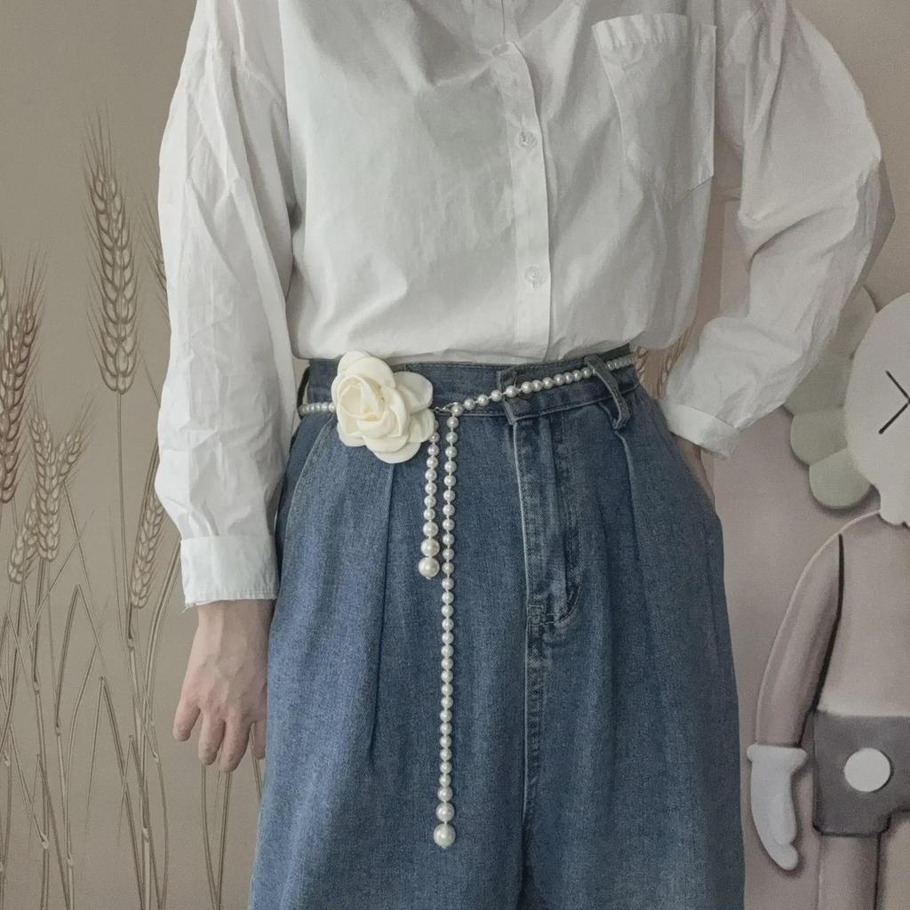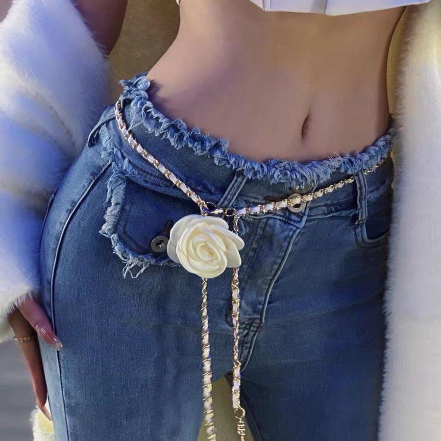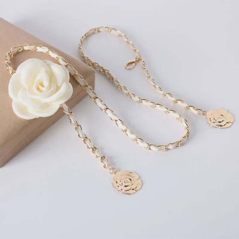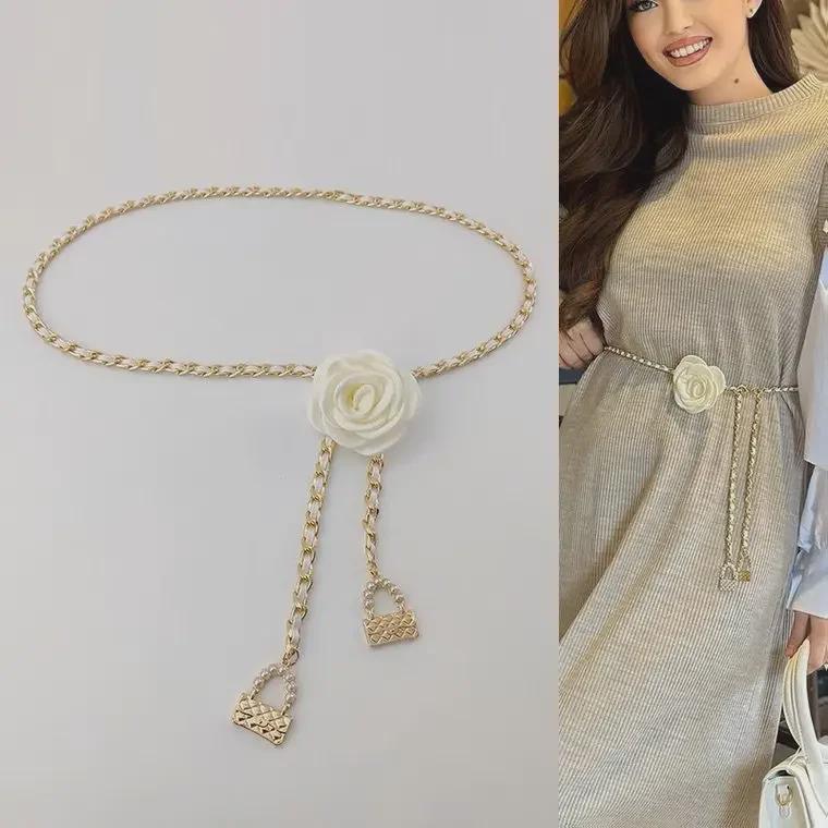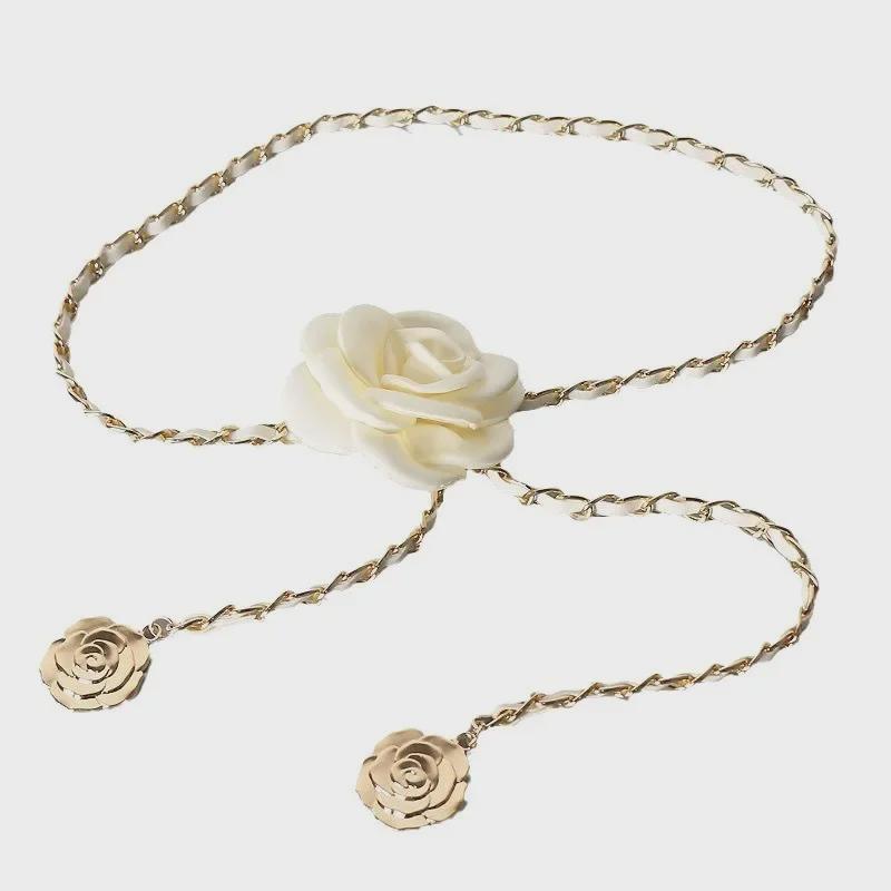 Цепочка на талию с цветком камелии - элегантный женский поясной аксессуар для платьев и джинсов