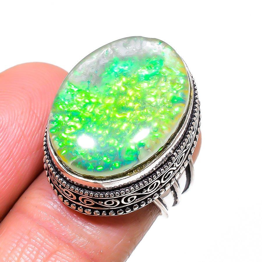 Натуральный зеленый триплет опал драгоценный камень 925 стерлингового серебра ювелирное кольцо размер 6.5 K0u12
