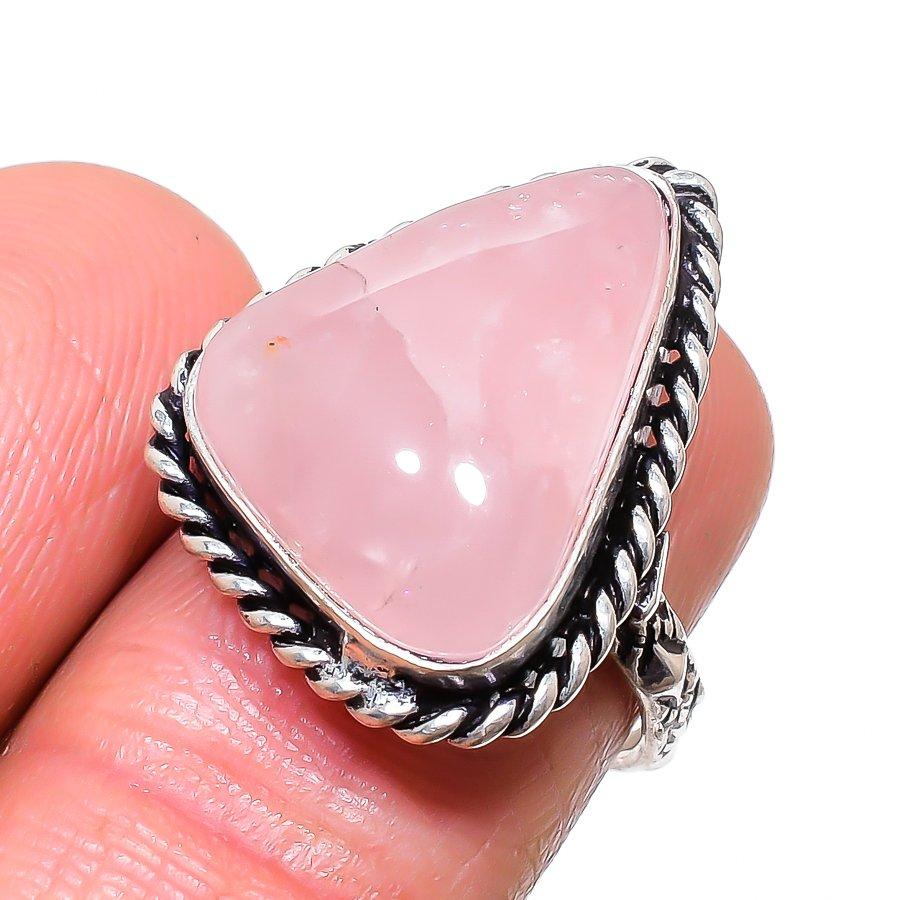Кольцо из серебра 925 пробы с натуральным розовым кварцем, размер 6,5 a8o01
