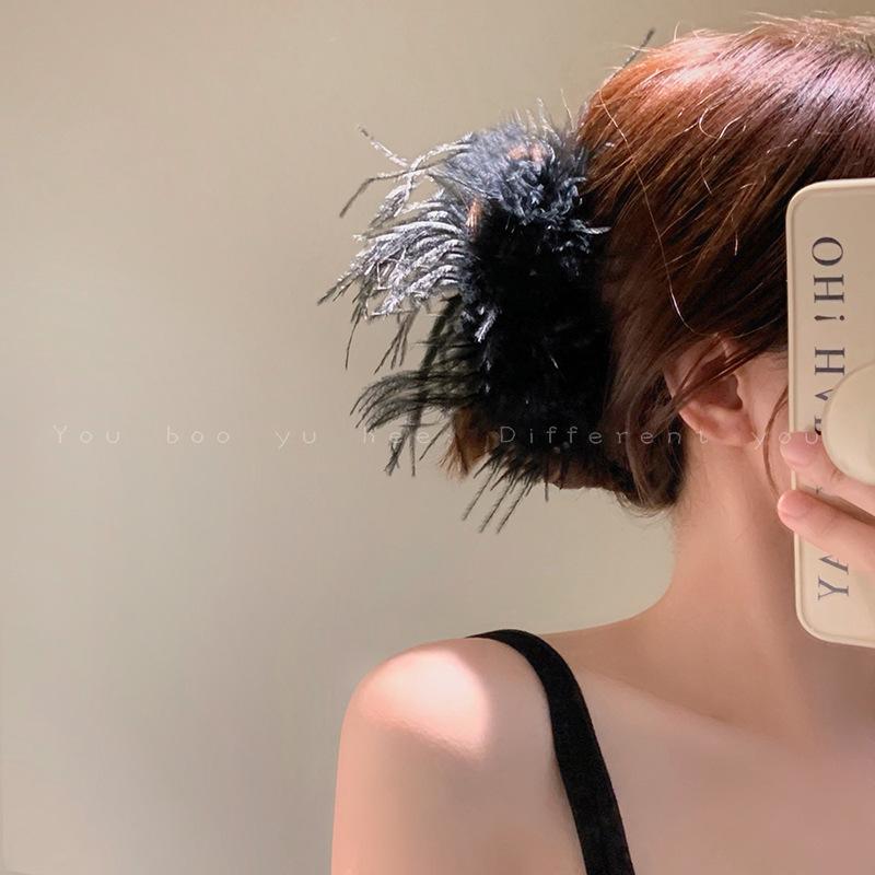 Корейская заколка для волос с перьями: 2024 Женская большая заколка-акула - изысканный аксессуар для волос в осеннем стиле