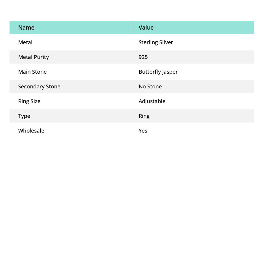 Кольцо из натурального серебра 925 пробы с бабочкой и яшмой, размер регулируется P7C04