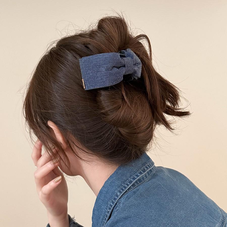 Стильная джинсовая заколка-бант для волос - Женский аксессуар-акула, для затылка и хвостика