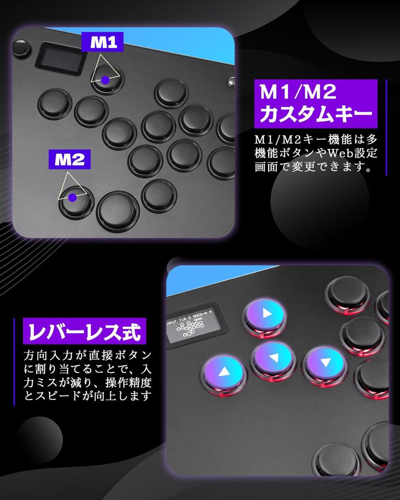 Этот бесрычажный контроллер представляет собой высокопроизводительное устройство ввода, оптимизированное для файтингов, и оснащен первой в отрасли многофункциональной кнопкой меню.. Это позволяет вам легко настраивать все функции, такие как режим ввода, режим Dpad, режим SOCD, турбо-скорость, настройки профиля, RGB-светодиод и т. д.. одной кнопкой. Корпус из алюминиевого сплава приятен на ощупь, кнопки мягкие на ощупь, бесшумная работа и RGB-подсветка создают игровую атмосферу.. Ввод данных с помощью кнопок точнее и быстрее, чем традиционные операции с рычагами, и может похвастаться временем реакции, которое идеально подходит для файтингов.. Он совместим с широким спектром платформ, включая Windows, ПК, Switch, Steam Deck, PS3, PS4, Arcade и Android, и требует совместимого конвертера для PS5 и XBOX.. Кроме того, он имеет функцию «горячей» замены ЖК-дисплея и клавишных переключателей, что делает его чрезвычайно простым в эксплуатации.. Оснащен платой Raspberry Pi Pico GP2040-CE с малой задержкой, что обеспечивает сверхбыстрый отклик с задержкой ввода менее 1 мс.