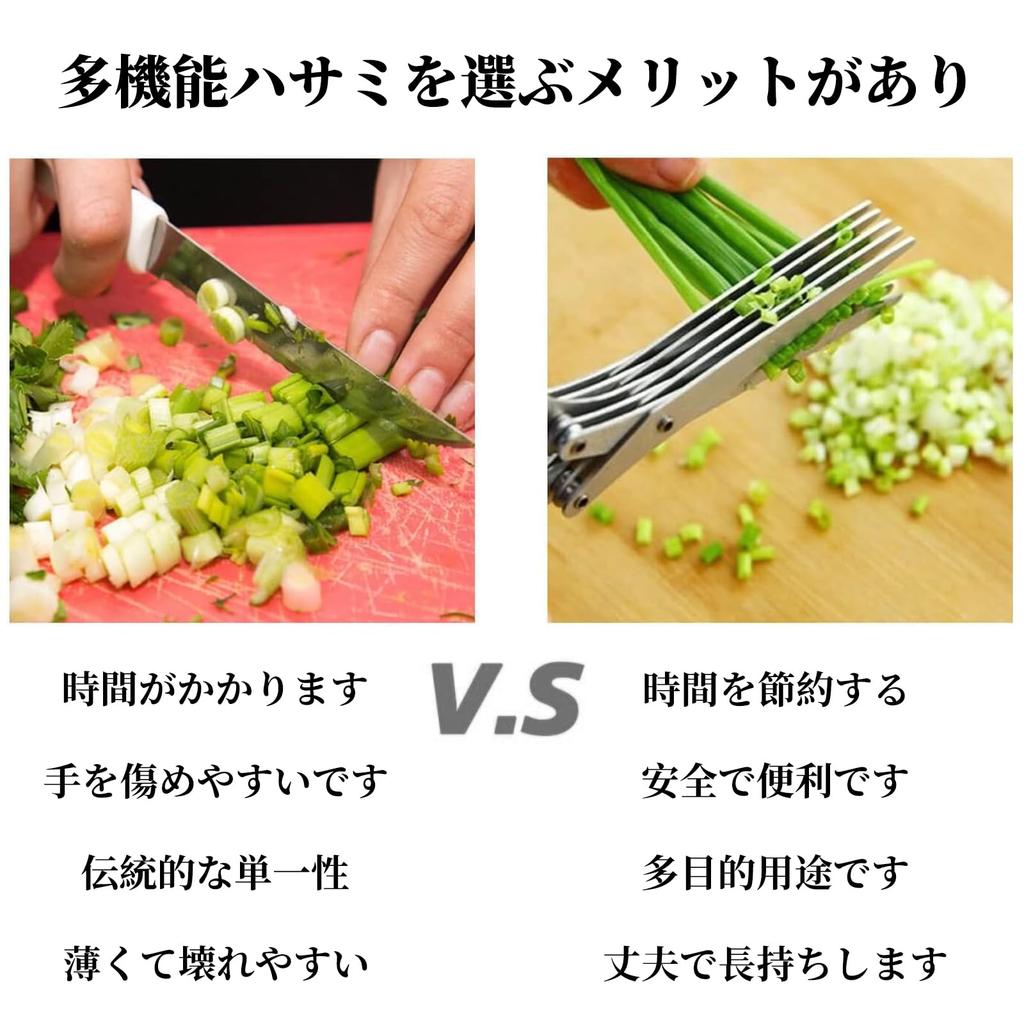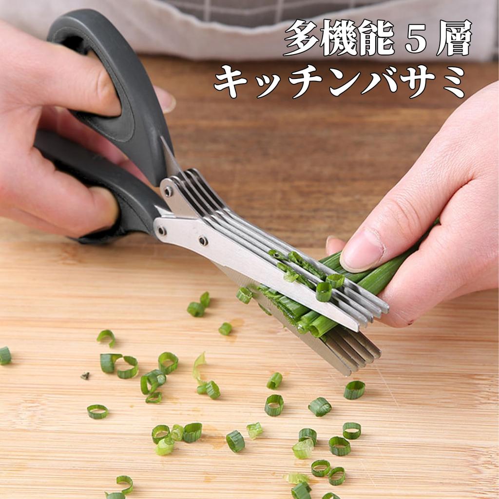 [Кухонные ножницы] Эти многофункциональные ножницы могут резать зелень, лук, водоросли, кинзу, сушеный перец чили, базилик, зеленый лук, мяту, розмарин, шалфей и кинзу.. Его также можно использовать для вырезания личных квитанций и нежелательной почты.