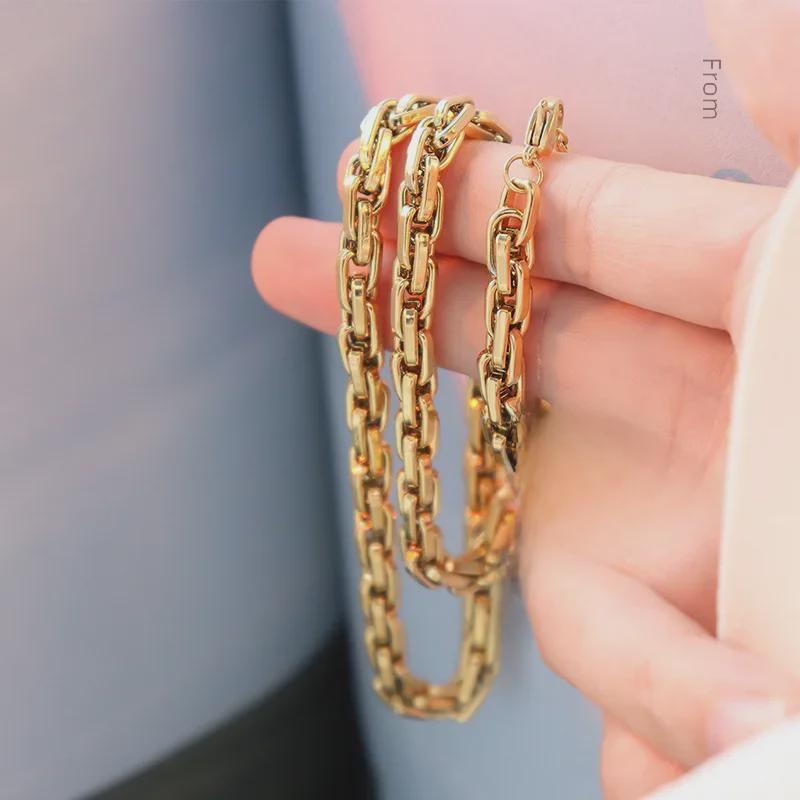 Женское ожерелье из титановой стали с 18-каратным золотым покрытием - нержавеющая сталь, безопасная для купания, P064 — купить товар онлайн с бесплатной доставкой по всему миру!