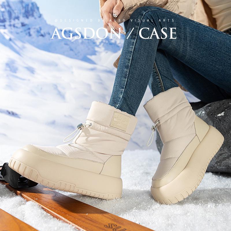 «Женские зимние ботинки Augusten 2024 года — короткие ботинки для активного отдыха на толстой подошве из хлопка и бархата белого цвета»