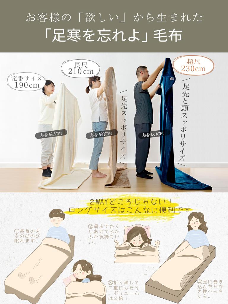 [Это не просто длинное одеяло и 2WAY! ] Наше теплое одеяло имеет длинный размер, примерно на 40 см больше обычного размера, и его можно использовать разными способами.. ➡ ①Даже высокие мужчины могут спать с комфортом. ➡ ②Накиньте его на плечи и наслаждайтесь пушистым комфортом.. ➡ ③ Отогните воротник, чтобы увеличить объем вдвое.. ➡ ④Идеально подходит для обертывания ног, чтобы предотвратить чувствительность к холоду.. ➡ ⑤Он может покрыть все ваше тело от пальцев ног до головы.. В частности, он плотно обхватывает ноги и плечи, которые часто мерзнут, поэтому вы можете использовать его разными способами, чтобы насладиться более теплым ночным сном.