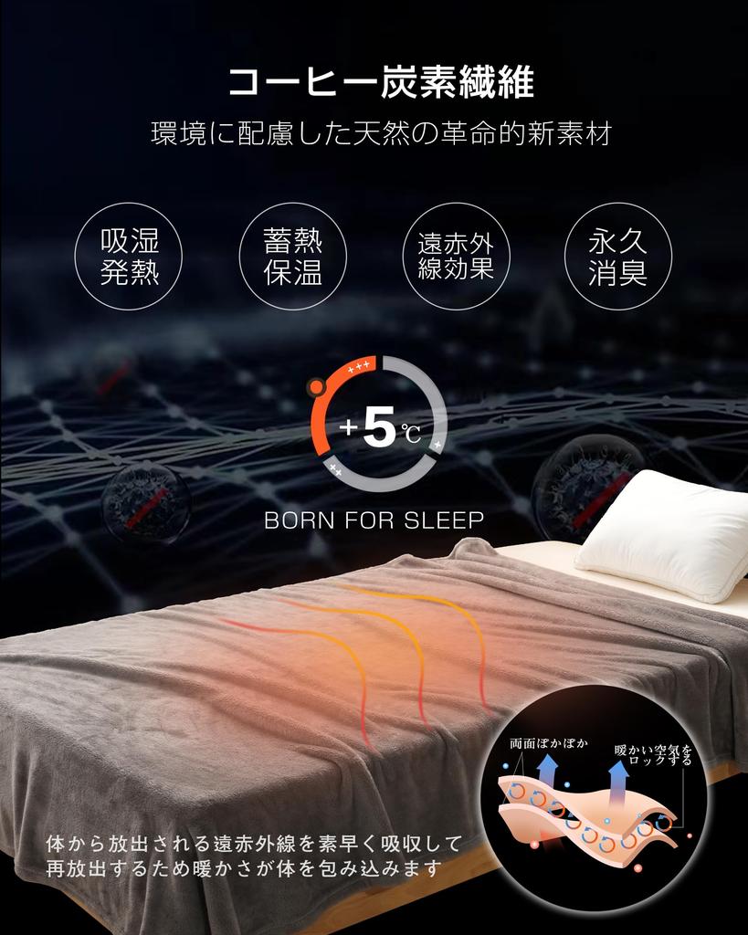 [Новый материал для естественного производства тепла/аккумулирования тепла] Поскольку мировые ресурсы истощаются, разработка экологически чистых материалов имеет решающее значение для создания устойчивого будущего.. Поэтому мы приняли «Эко Кофейное волокно», которое родилось из мудрости повседневной жизни.. Этот материал обладает превосходными дезодорирующими и дезодорирующими свойствами, эффектами теплогенерации и аккумулирования тепла, дальними инфракрасными лучами, а также быстро сохнет.. Наслаждайтесь блаженным сном, завернувшись в роскошное длинное теплое одеяло с мягким тепловым эффектом этого нового материала.