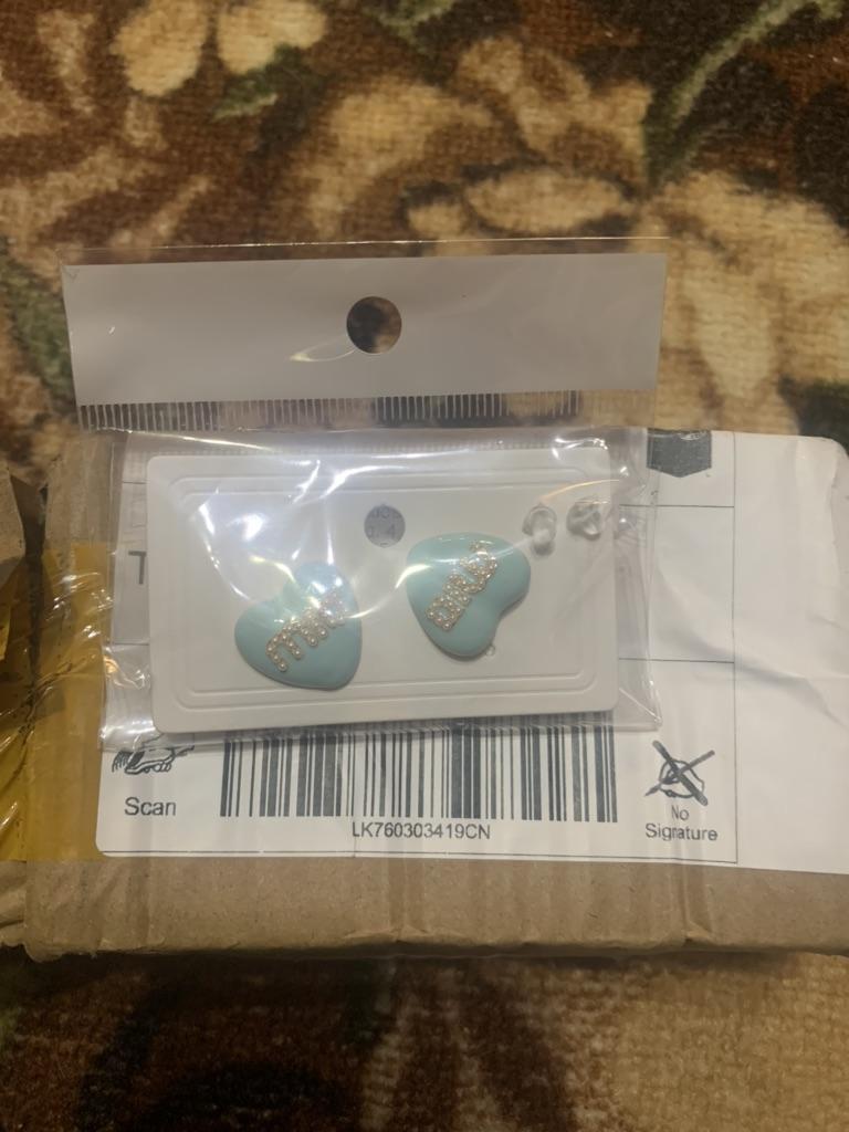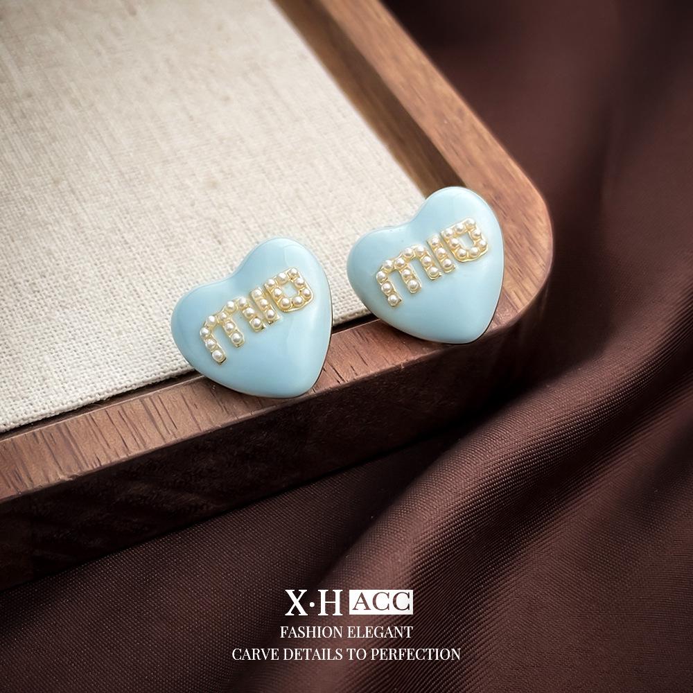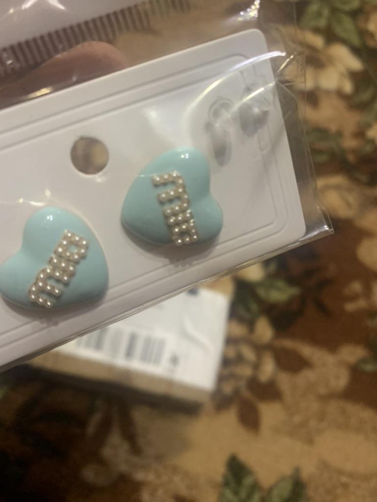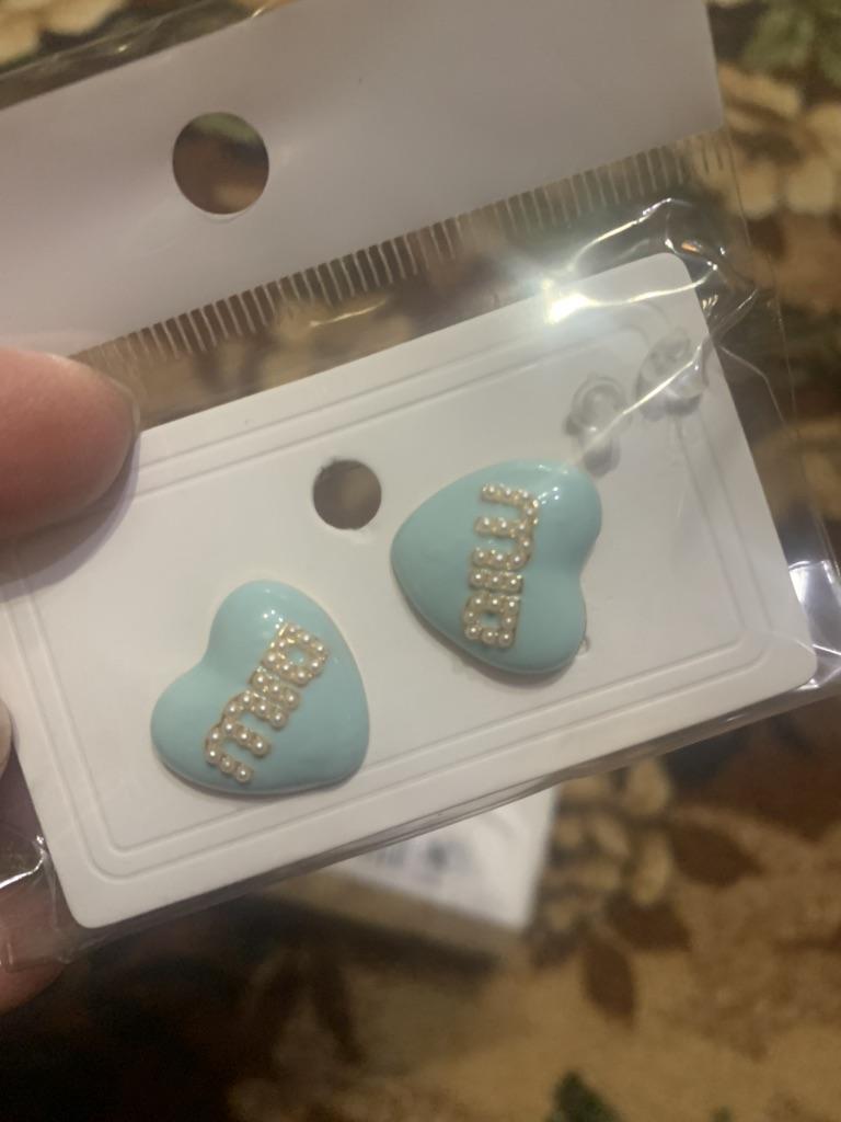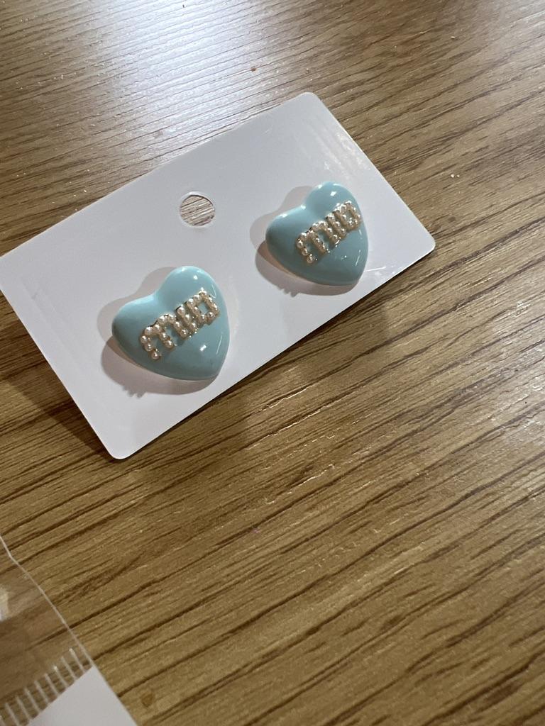 МодельСерьги с синими буквами в форме сердца