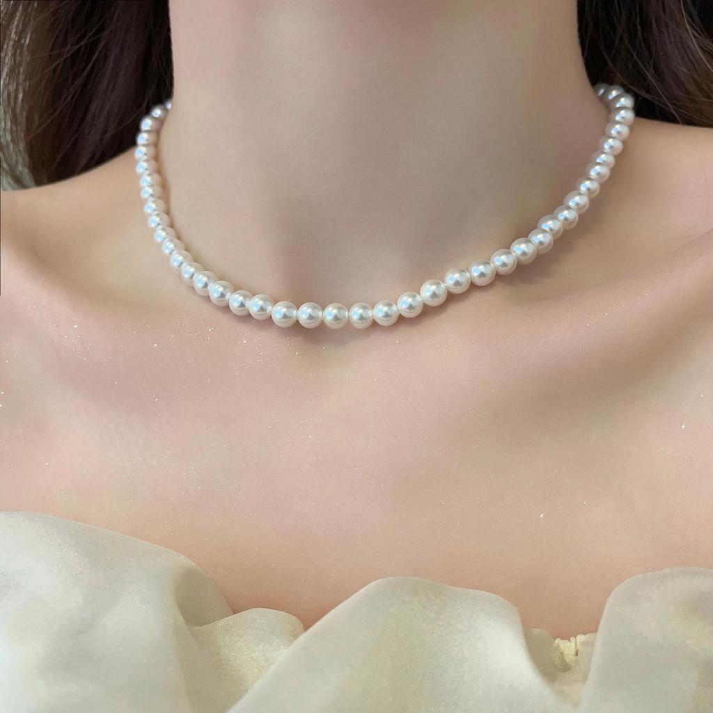 Элегантное ожерелье из стеклянного жемчуга - легкая роскошная цепочка на ключицу для женщин