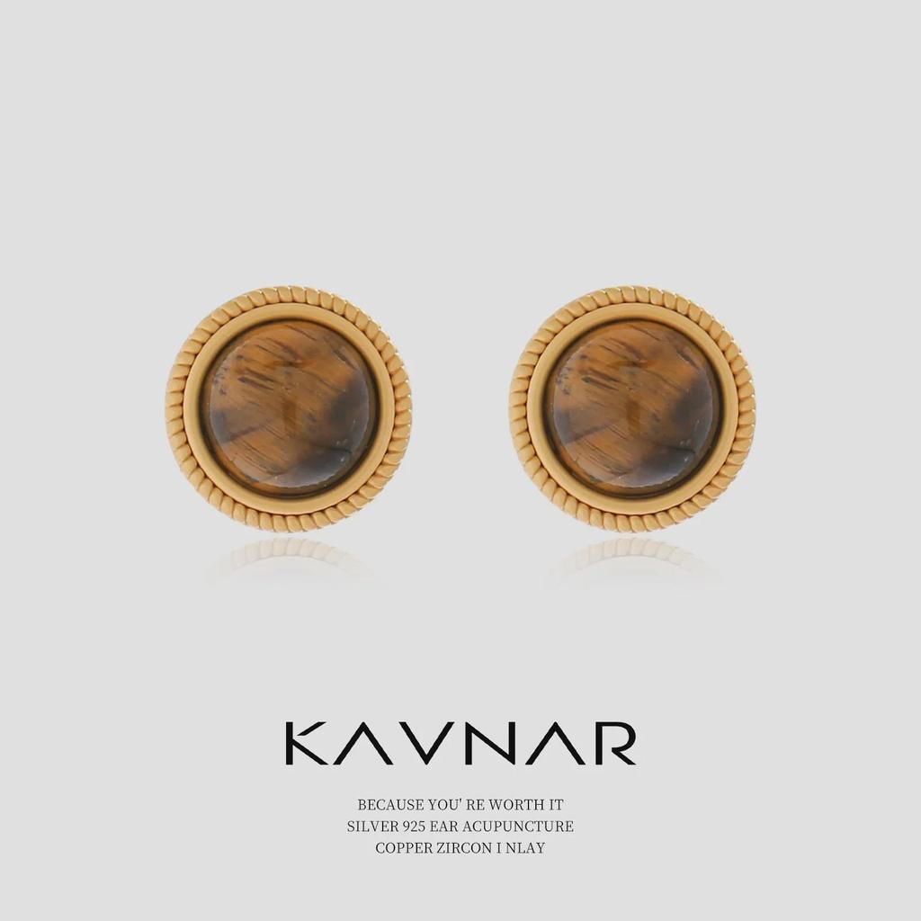 Серьги из матового золота 18 карат с коричневым тигровым глазом и стерлинговым серебром — дворцовый стиль, мода высокого класса