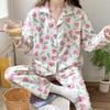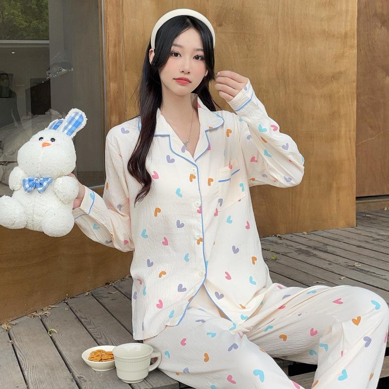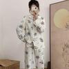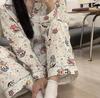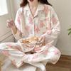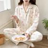 Пижамный комплект из хлопка «Облако» для женщин: Кардиган свободного кроя с длинным рукавом и милыми лацканами в студенческом стиле на весну и осень