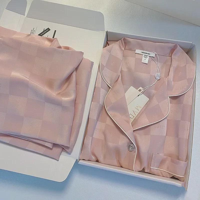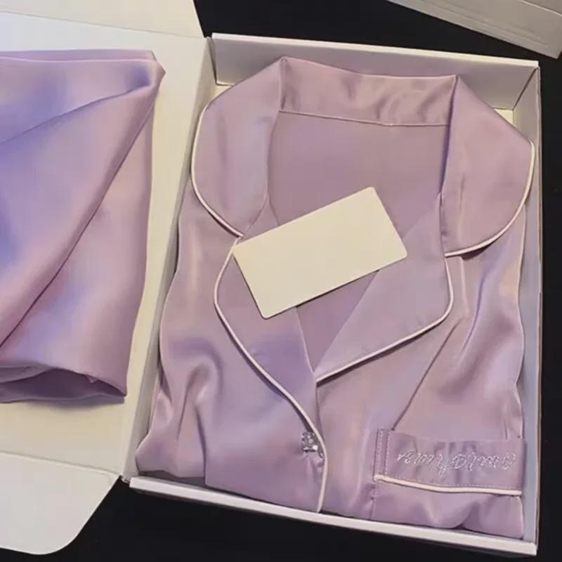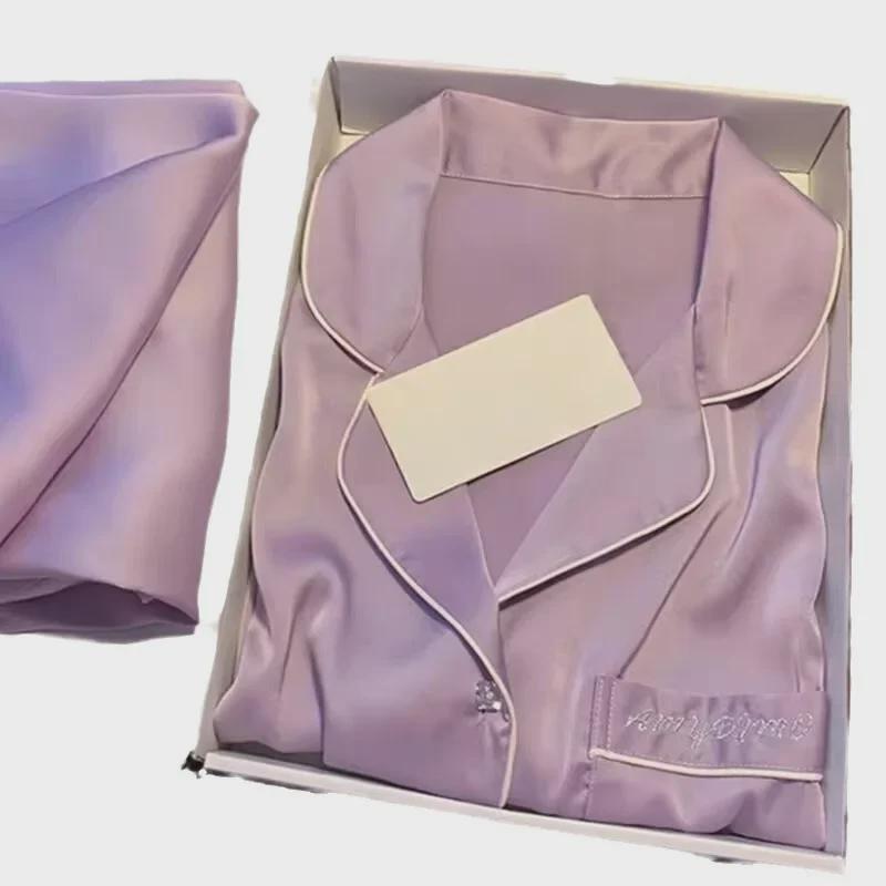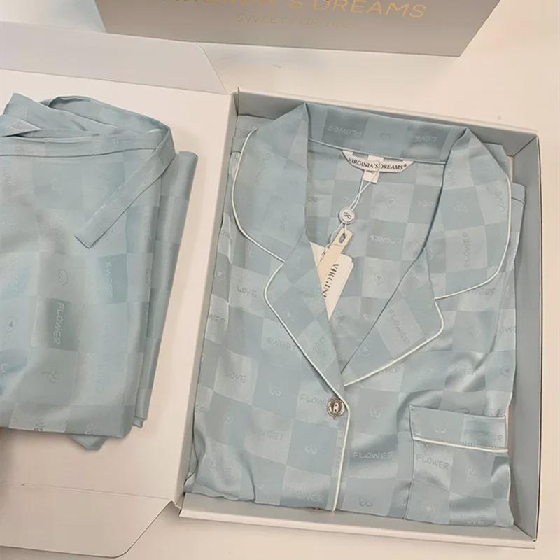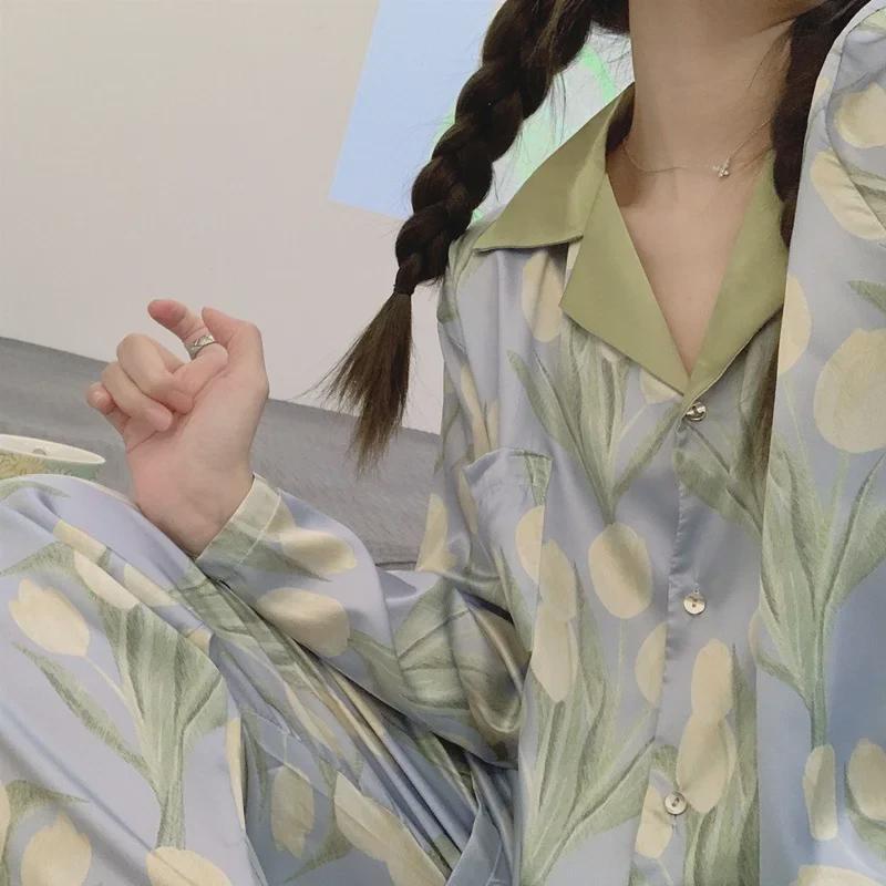 Женский пижамный комплект Ice Silk — топ с длинными рукавами и брюки на весну/осень
