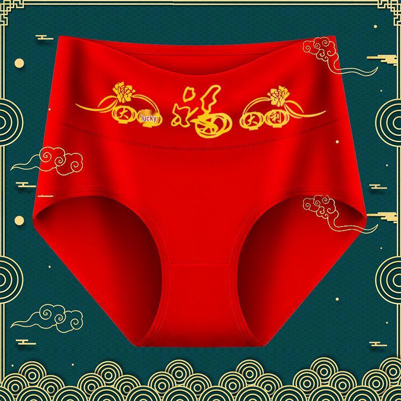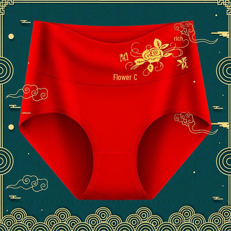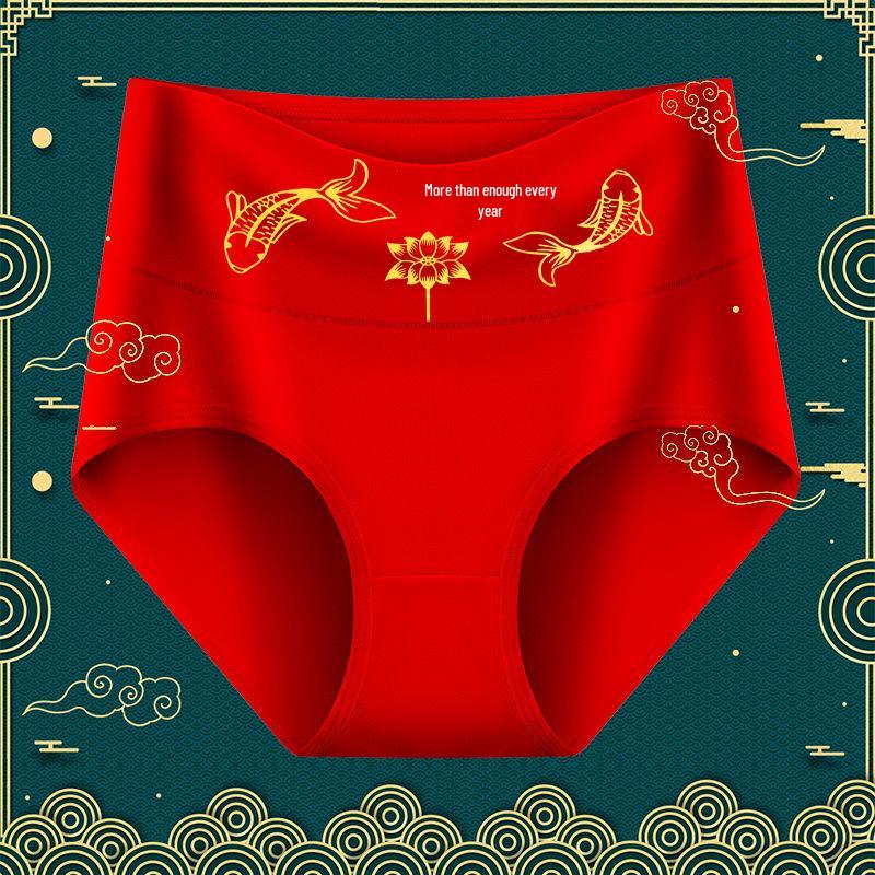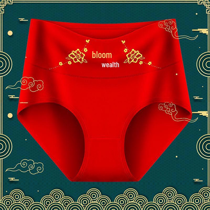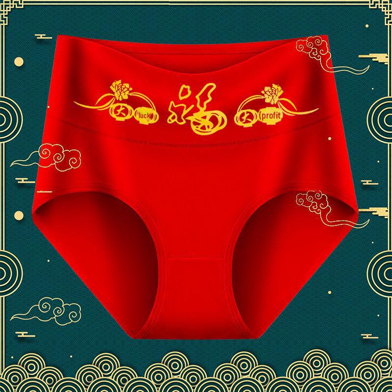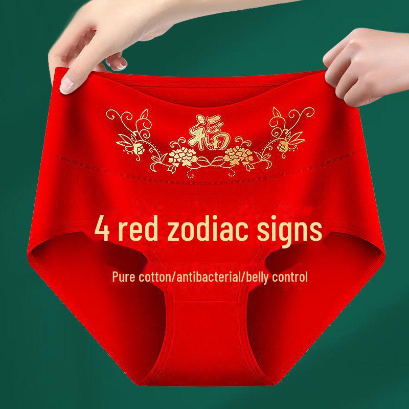 Женские трусы-брифы Zodiac Year с высокой талией из красного хлопка с антибактериальными дышащими свойствами