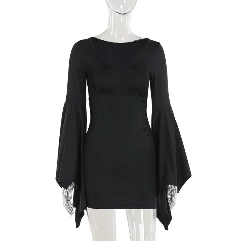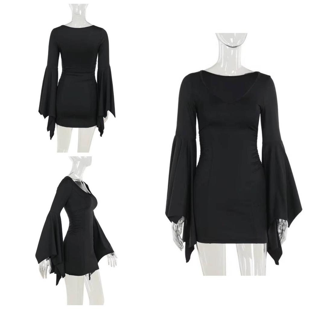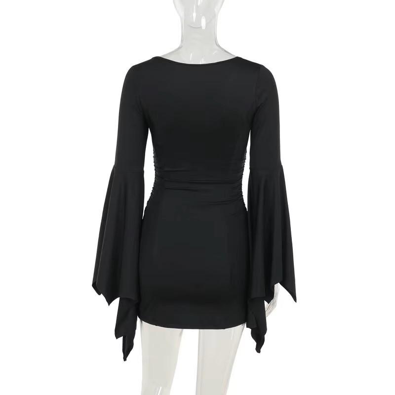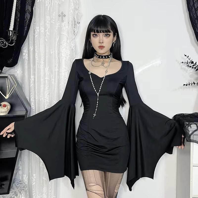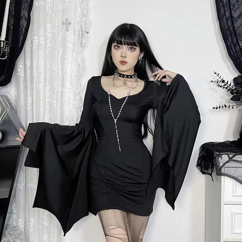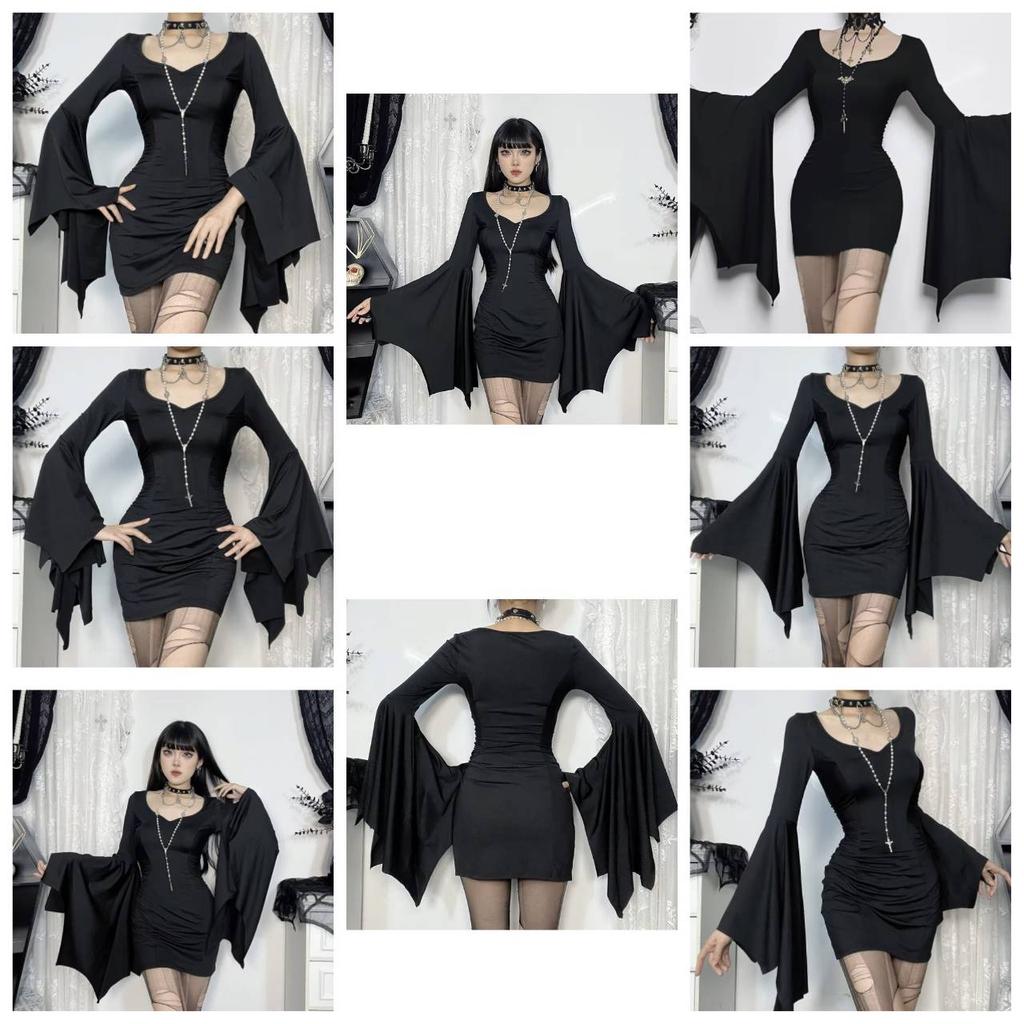 Готический Темный Косплей Вечерняя одежда Женская Мода Рукав Летучая мышь Мини-платье Элегантные Облегающие Платья с Плиссировкой Бодикон Торговый центр Учительская одежда