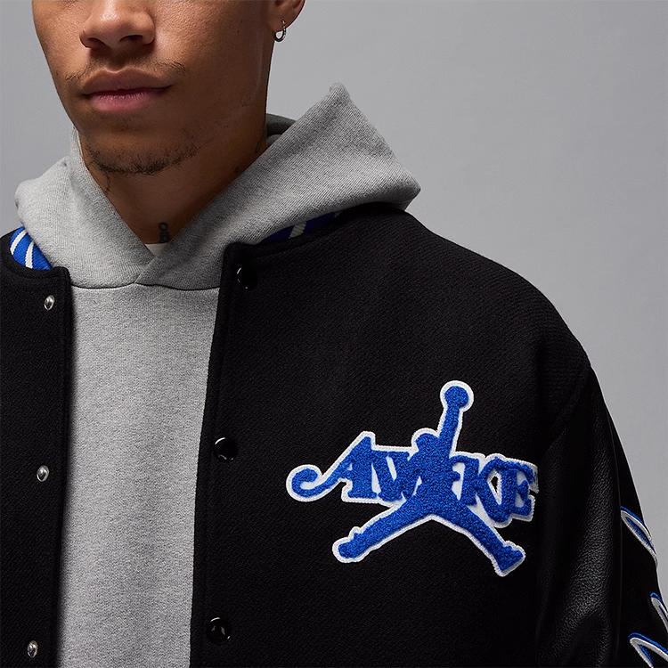 Jordan Полосатая однобортная куртка с длинным рукавом и бейсбольным воротником, мужские куртки, черная FQ5440-010
