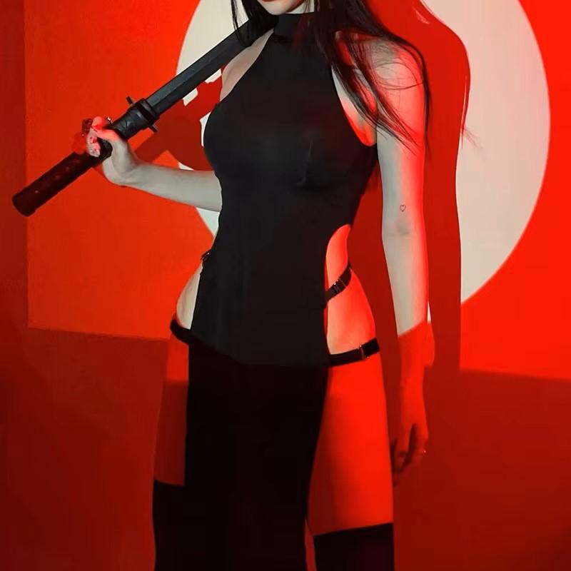 Готический гот темный косплей высокая талия разрез сбоку сексуальное платье без рукавов тонкий женский летний ночной клуб одежда