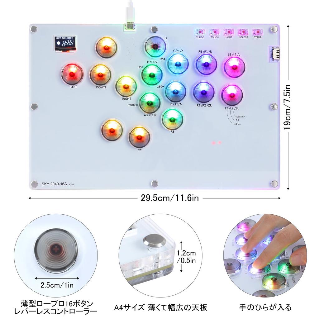 Leverless Akekon Ultra Thin 2024 Выпущена обновленная версия аркадного контроллера, совместимого с ПК, PS4, PS3, Switch Steam Deck и т. д.. Светодиодная подсветка RGB с функцией горячей замены и функцией быстрого огня для файтингов. В комплект входит руководство по эксплуатации на японском языке. Формат бумаги A4. Цветная картонная упаковка.