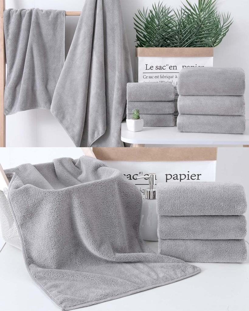[Отличное впитывание воды и быстрое высыхание] Лучше впитывает воду, чем хлопковый материал.. Поверхность микроволокнистого материала имеет многочисленные поры, которые могут быстро впитывать большое количество воды.. Это материал, который впитывает влагу, если просто аккуратно нанести его на волосы или кожу, а также с него легко удалить грязь.. Воздух, находящийся в зазорах, рассеивает влагу, поэтому полотенце быстро высыхает, подавляя микробы на нем и сохраняя ваше здоровье.
