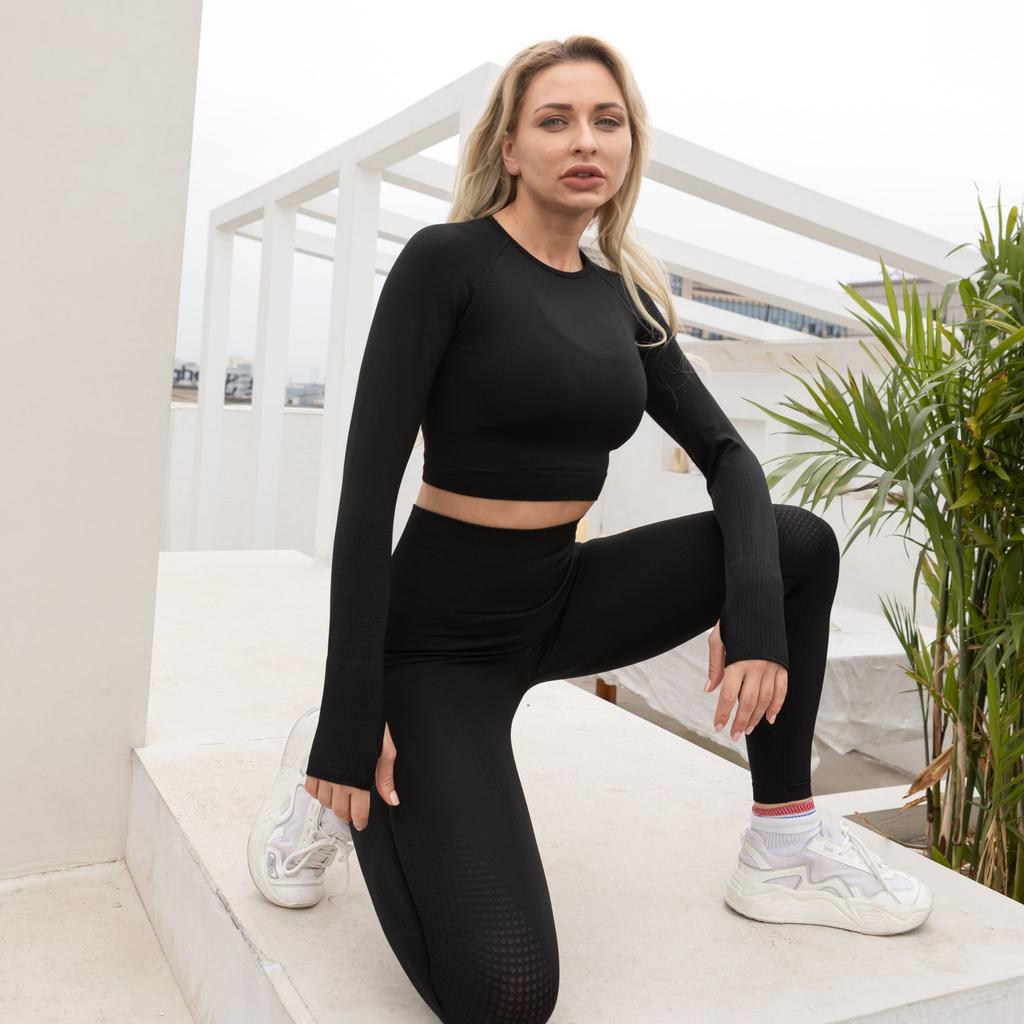 2 шт. спортивный костюм для йоги, тренажерный зал, женские леггинсы для бега, с длинным рукавом, одежда для езды на велосипеде, спортивный костюм для отдыха на открытом воздухе