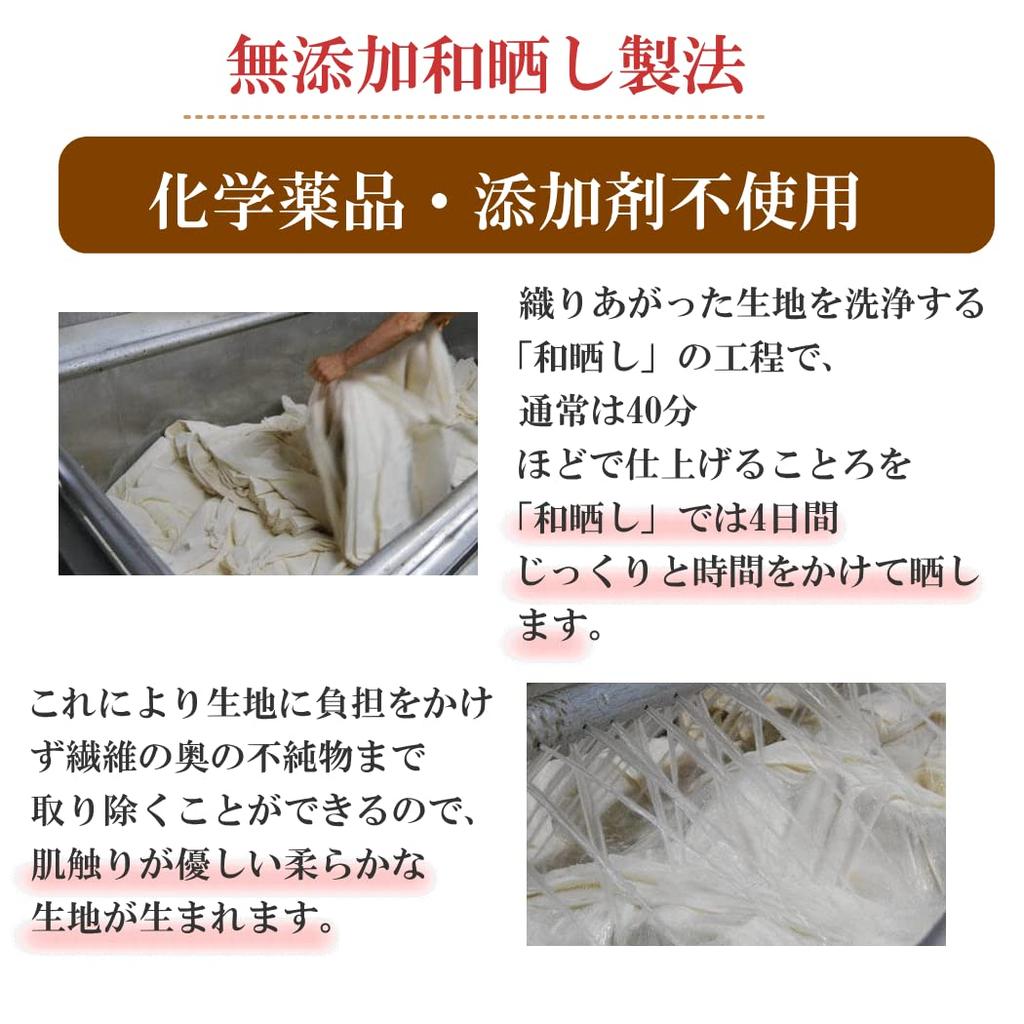<Метод производства без добавок, безопасный для младенцев>: Японское отбеливание — традиционный японский метод производства, который сегодня встречается редко.. При западном отбеливании загрязнения удаляются примерно за 40 минут путем добавления отбеливателя, но при японском отбеливании этот процесс занимает до четырех дней.. Не нагружает волокна хлопка, придавая им пушистую и мягкую текстуру.
