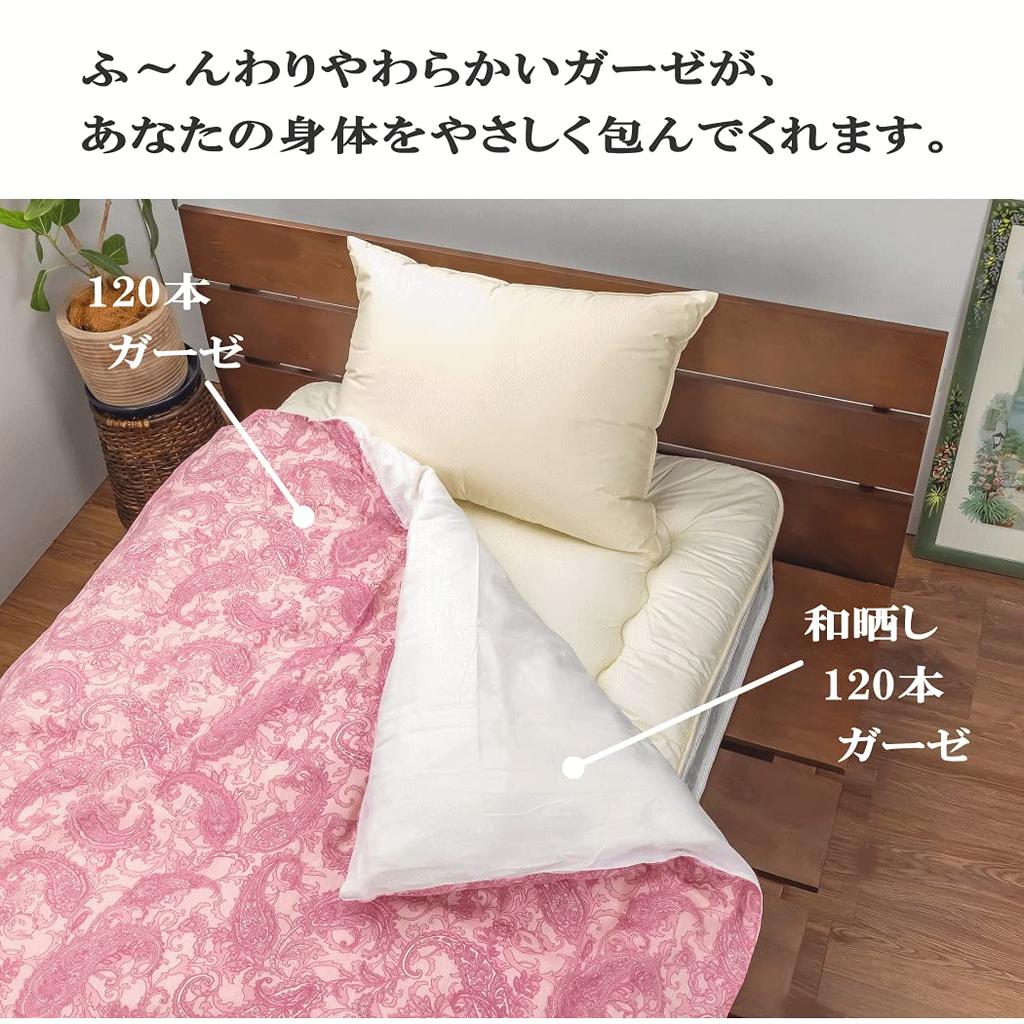 <Размер> 150 x 210 см (одинарный длинный) <Цвет> Внешний хлопок, узор «пейсли» розовый / Обратная сторона однотонная белая