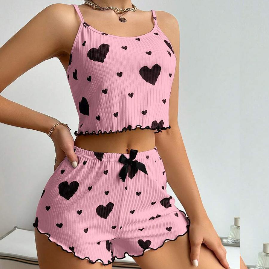 Комплект из 2 предметов женской пижамы, повседневная одежда для сна, шорты с принтом, майки и шорты, белые вентилируемые мягкие повседневные костюмы с принтом «Любовь»