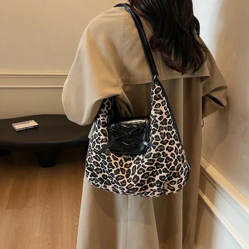 Повседневные однотонные большие вместительные простые универсальные полумесяцы с леопардовым принтом индивидуальные дорожные сумки через плечо