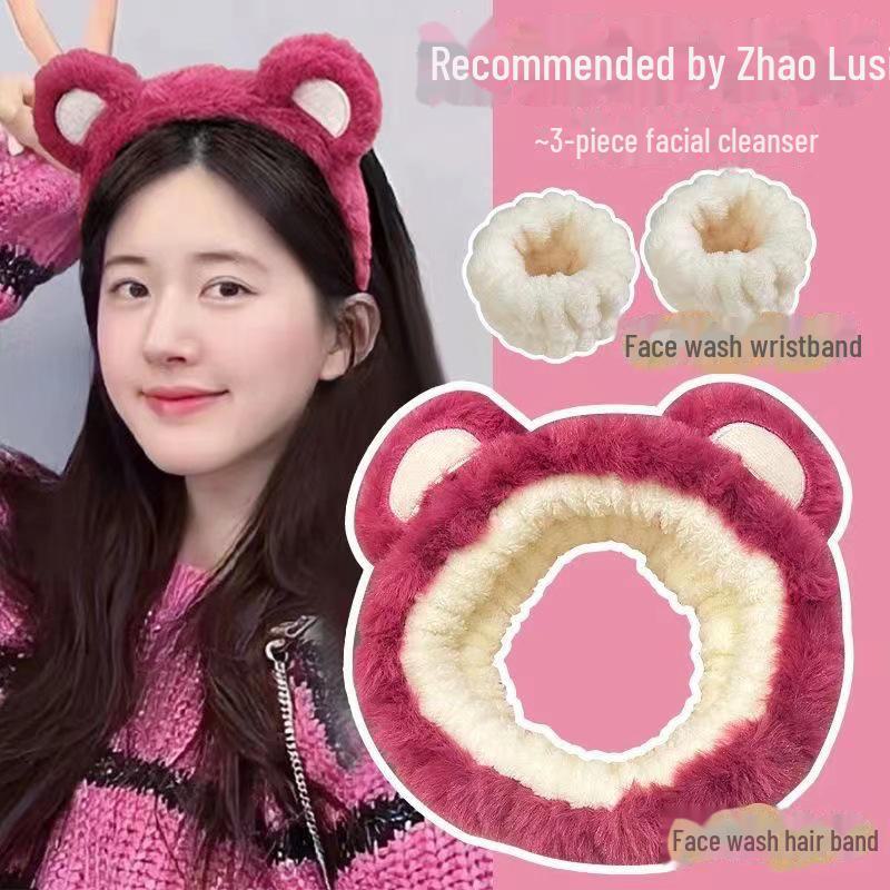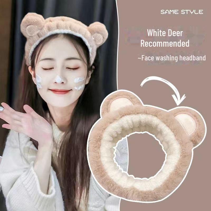 Набор для мытья лица из трех предметов с изображением белого оленя: В комплект входят влагонепроницаемая повязка на голову, повязка на запястье и повязка в виде медведя для масок для лица.