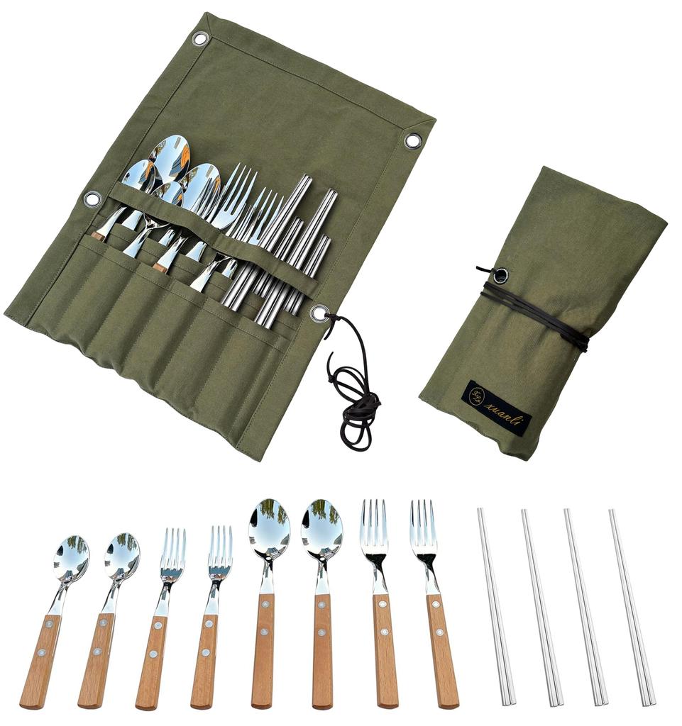 [Специальный футляр для столовых приборов] Высококачественный набор столовых приборов для использования на открытом воздухе, изготовленный из парусины, хлопка и коровьей кожи. Этот набор столовых приборов для использования на открытом воздухе поставляется со специальным футляром для столовых приборов.. Футляр для столовых приборов изготовлен из высококачественного материала: корпус из хлопчатобумажной ткани, шнурок из коровьей кожи.. Размеры ящика для столовых приборов составляют 34,5 см в длину и 26,5 см в ширину, что позволяет вам разместить все необходимые столовые приборы.. Корпус из хлопчатобумажной ткани прочен и долговечен, а ремни из коровьей кожи добавляют элегантную текстуру.. Этот эксклюзивный футляр для столовых приборов изготовлен искусными мастерами.. Мы уделяем пристальное внимание каждой детали, гарантируя как долговечность, так и простоту использования.. При транспортировке чехол для столовых приборов защищает ваши столовые приборы и сохраняет их в порядке.. Кроме того, сочетание красивого дизайна и высококачественных материалов делает его пригодным не только для использования на открытом воздухе, но и для хранения на кухне и в столовой.