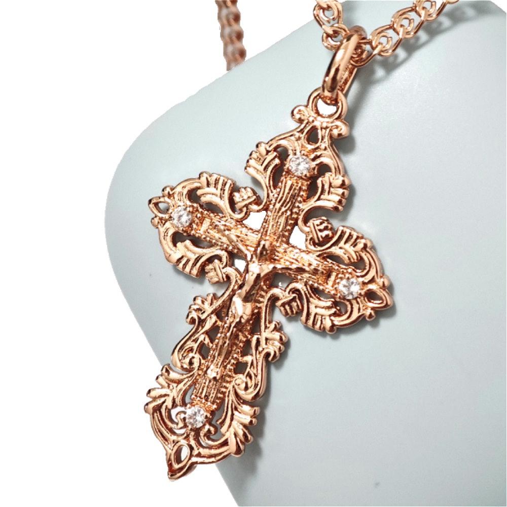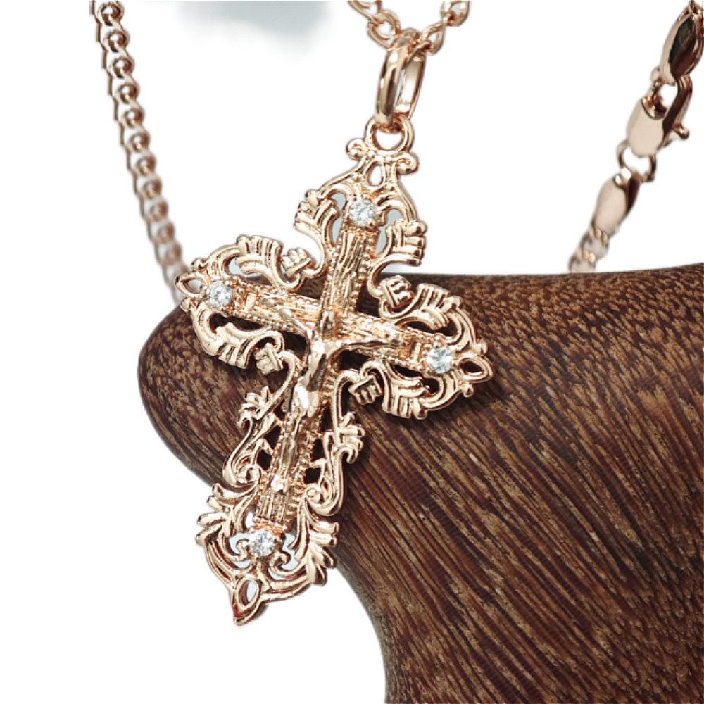 Подвеска в виде креста Иисуса с кружевом, розовое золото, ожерелье, подарок на день рождения для женщины