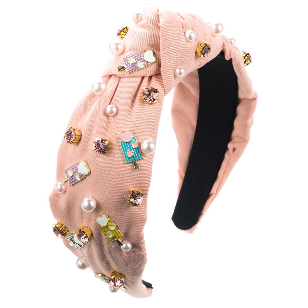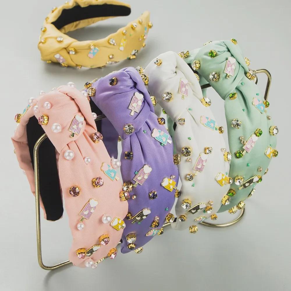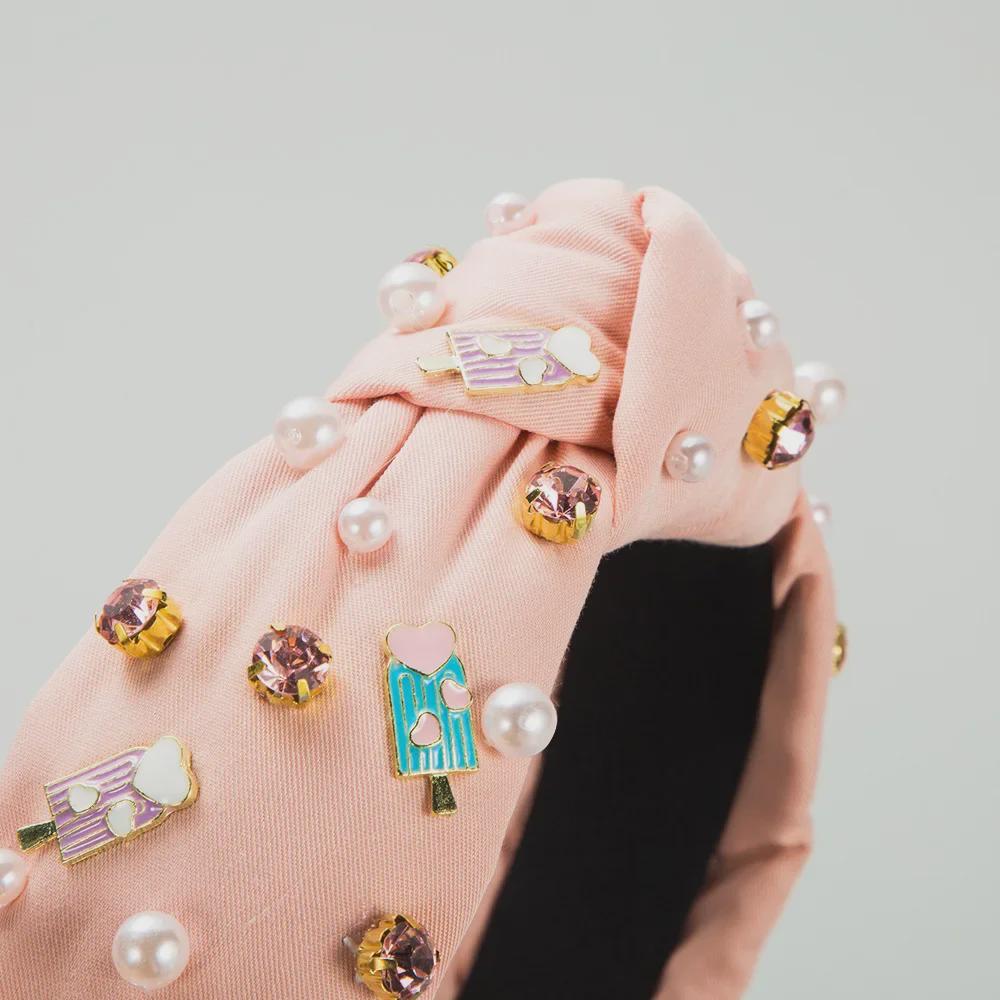 Весенняя повязка на голову в стиле барокко с пришитыми вручную драгоценными камнями и жемчугом — уникальный аксессуар для волос, вдохновленный мороженым