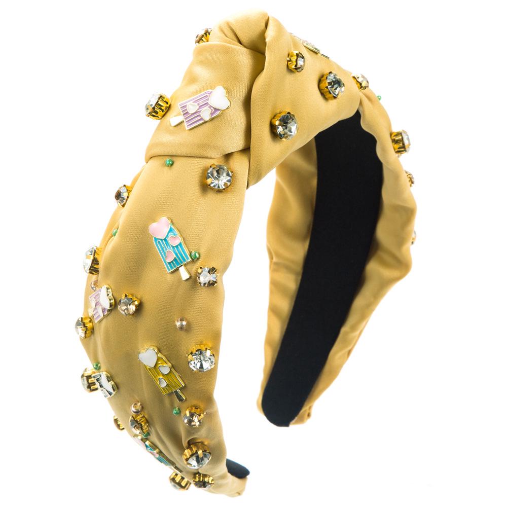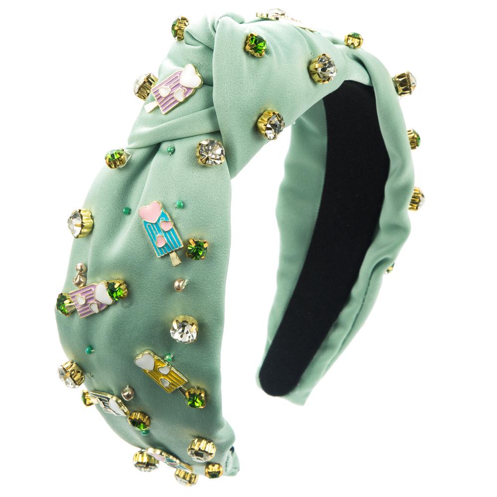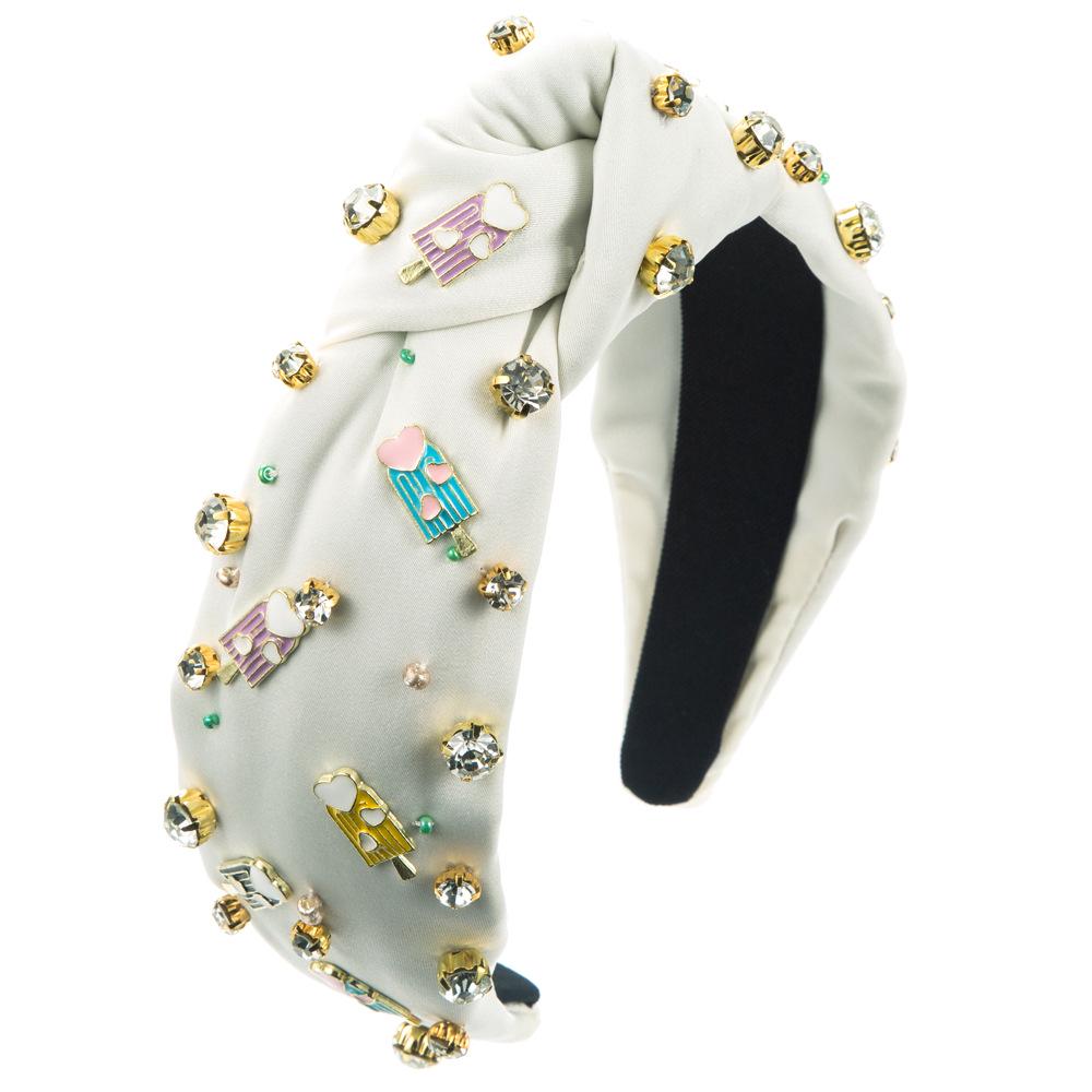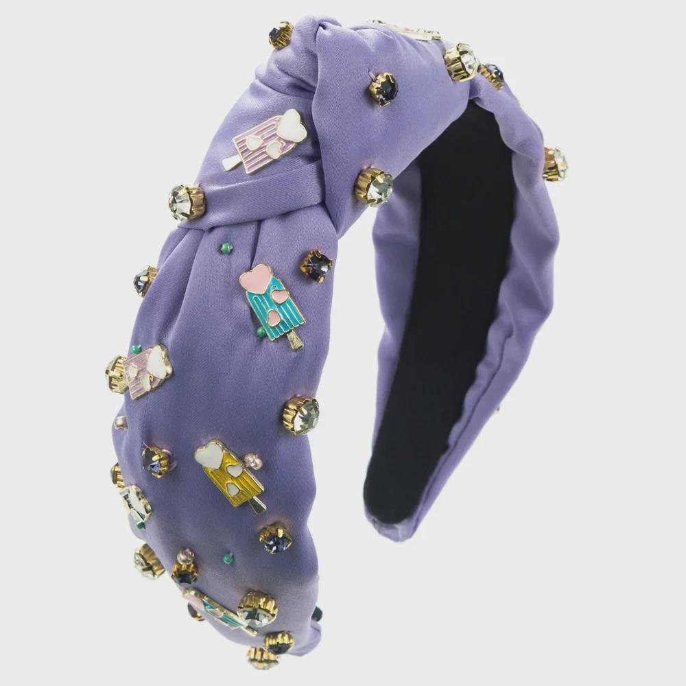 Весенняя повязка на голову в стиле барокко с пришитыми вручную драгоценными камнями и жемчугом — уникальный аксессуар для волос, вдохновленный мороженым