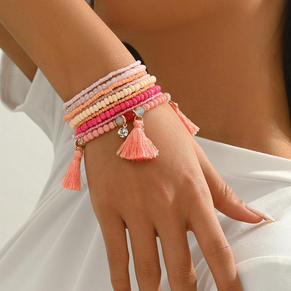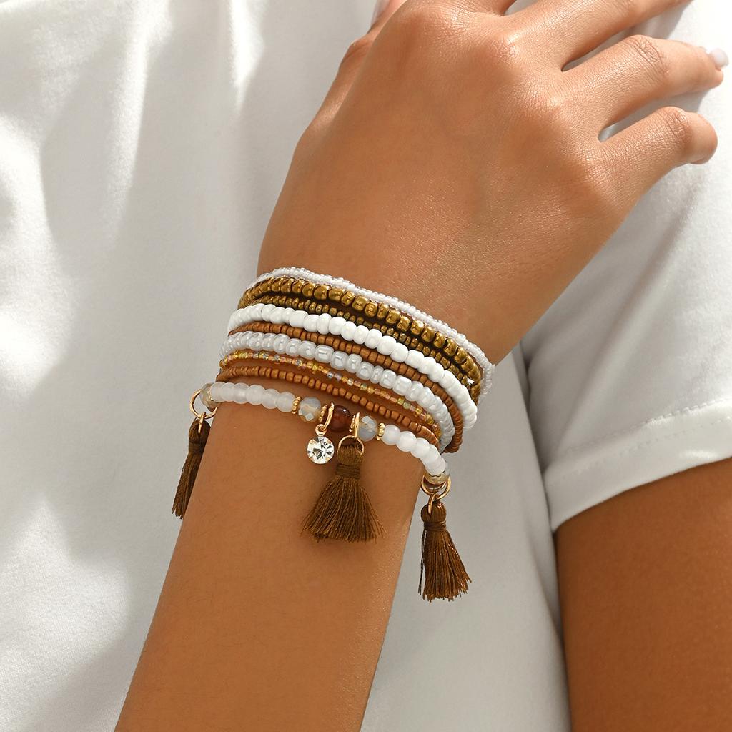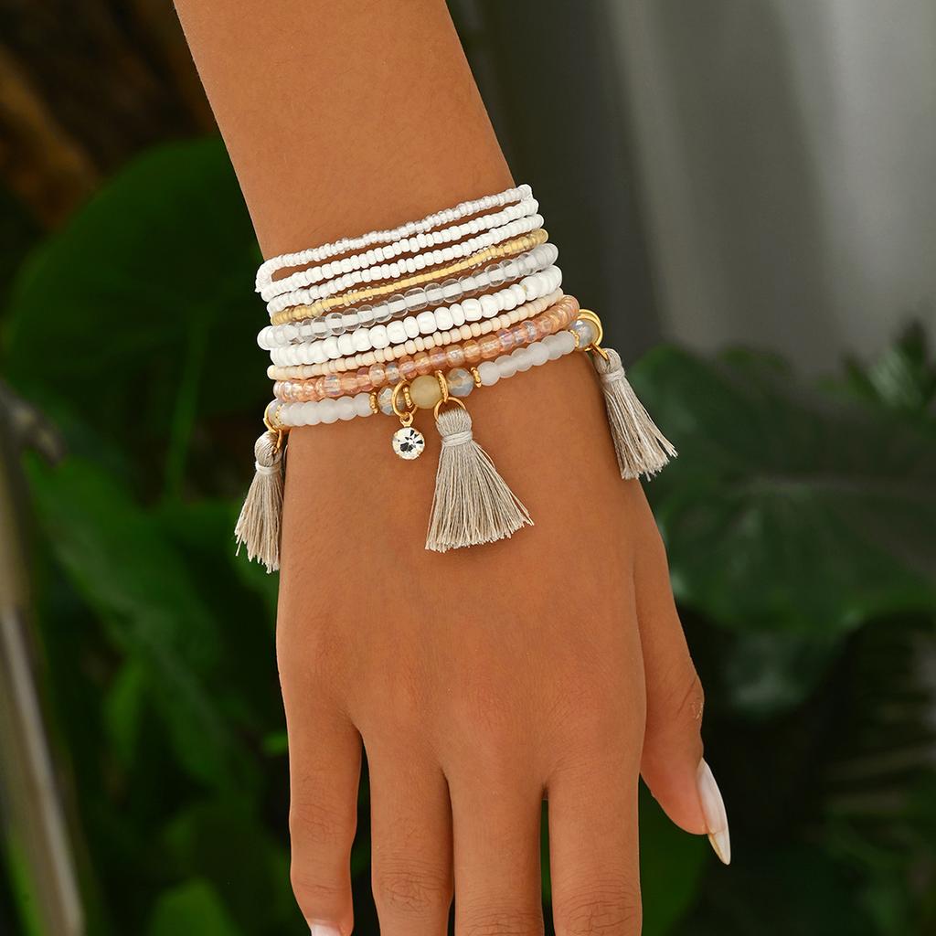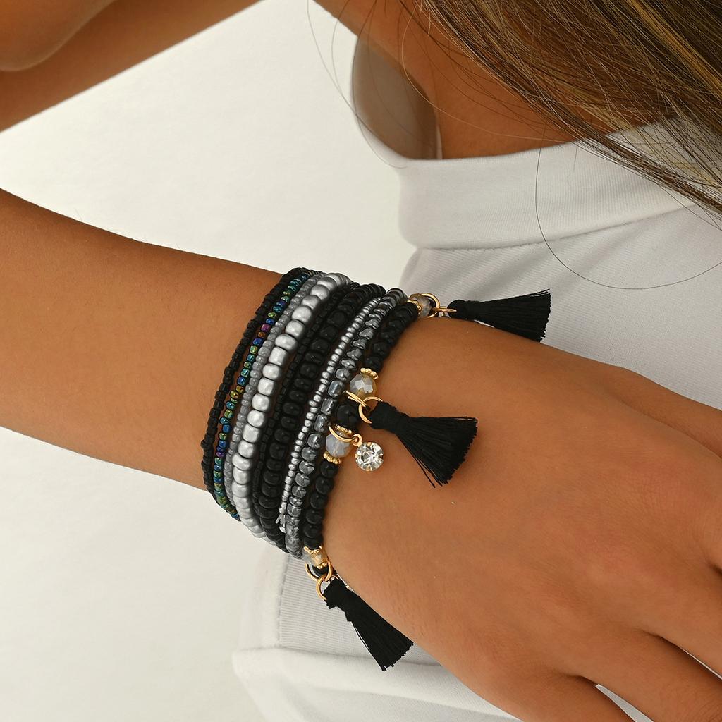 Геометрический модный женский браслет, набор из плетеных рисовых бусин, универсальный браслет, персонализированные ювелирные изделия