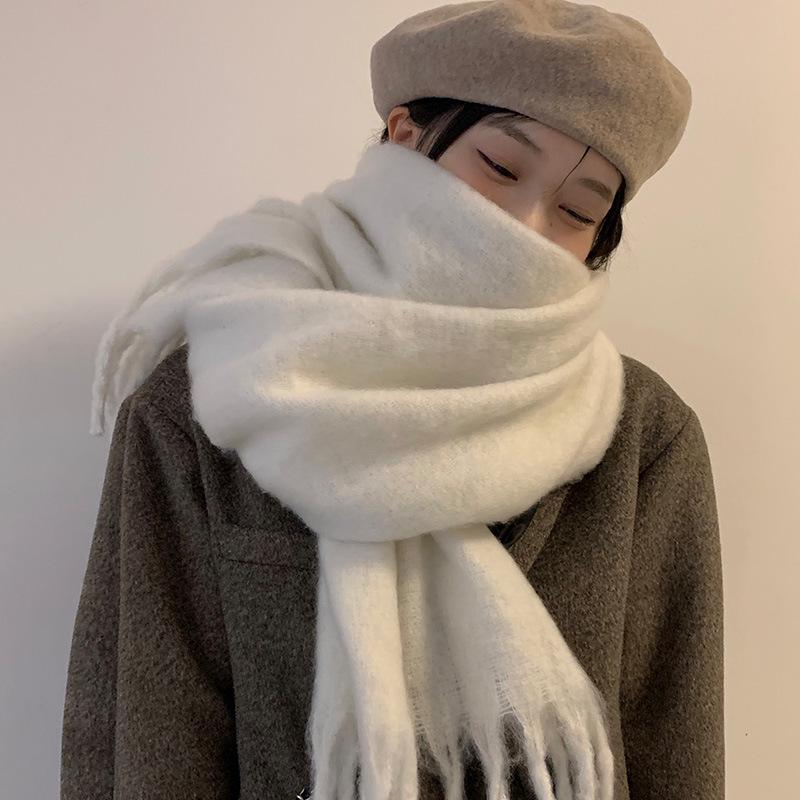 2023 Новый Высококачественный Мохеровый Шарф: Толстая, теплая однотонная шаль для мужчин и женщин - корейский зимний маст-хэв