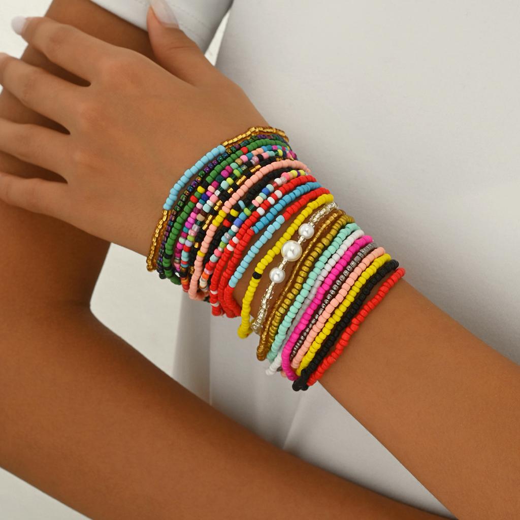 Женский комплект браслетов из бисера в геометрическом стиле, многослойный плетеный дизайн, высококачественный браслет, универсальное украшение