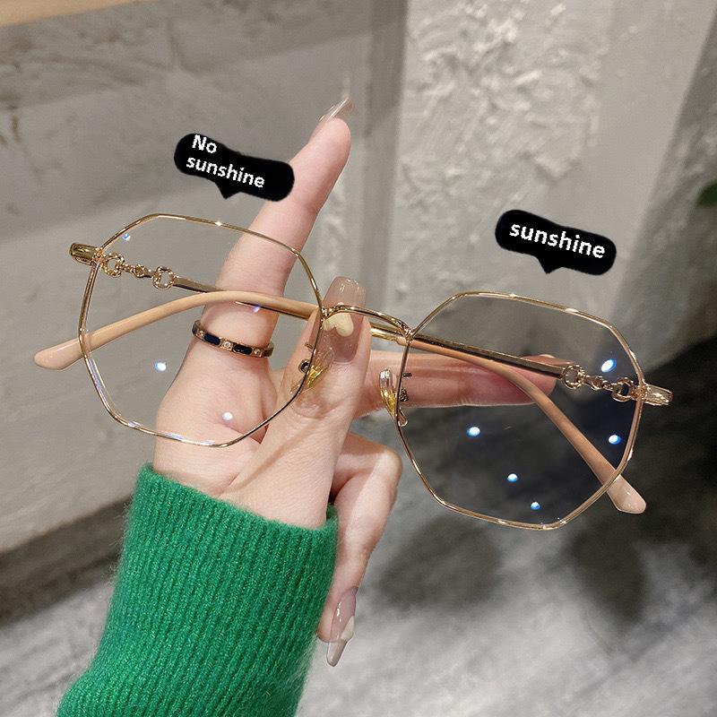 Фотохромные очки с золотой проволокой, защищающие от синего света, для женщин, с тонким дизайном лица, защита глаз, совместимы с близорукостью.